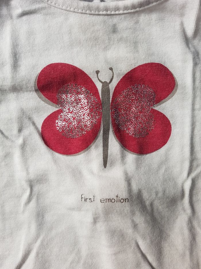 Ensemble assorti très peu porté. Comme neuf. Taille 6 mois - 68cm - marque okaïdi. Robe en jean avec bretelle amovible et deux tailles possible. Tshirt avec imprimé papillon. Legging blanc. Envoi Rapide et Soigné J'applique une réduction si vous prenez plusieurs articles de mon dressing. Photos supplémentaires possible sur demande