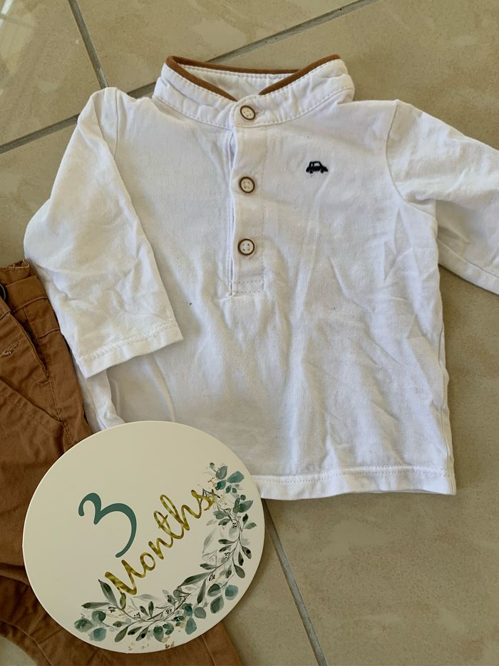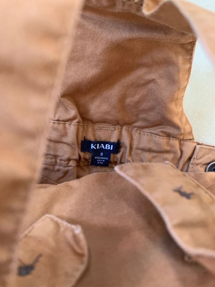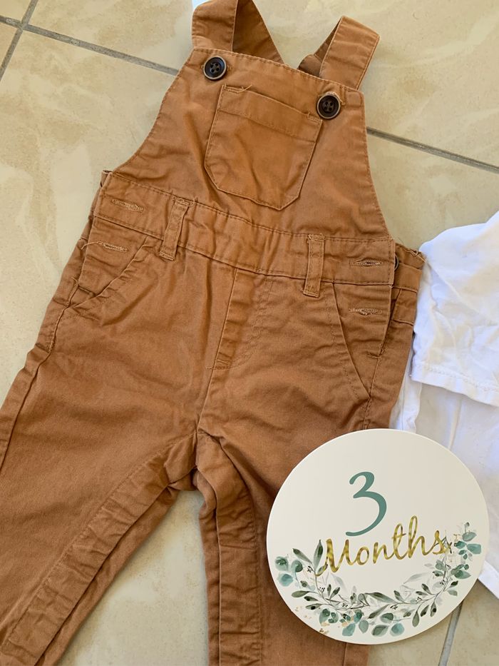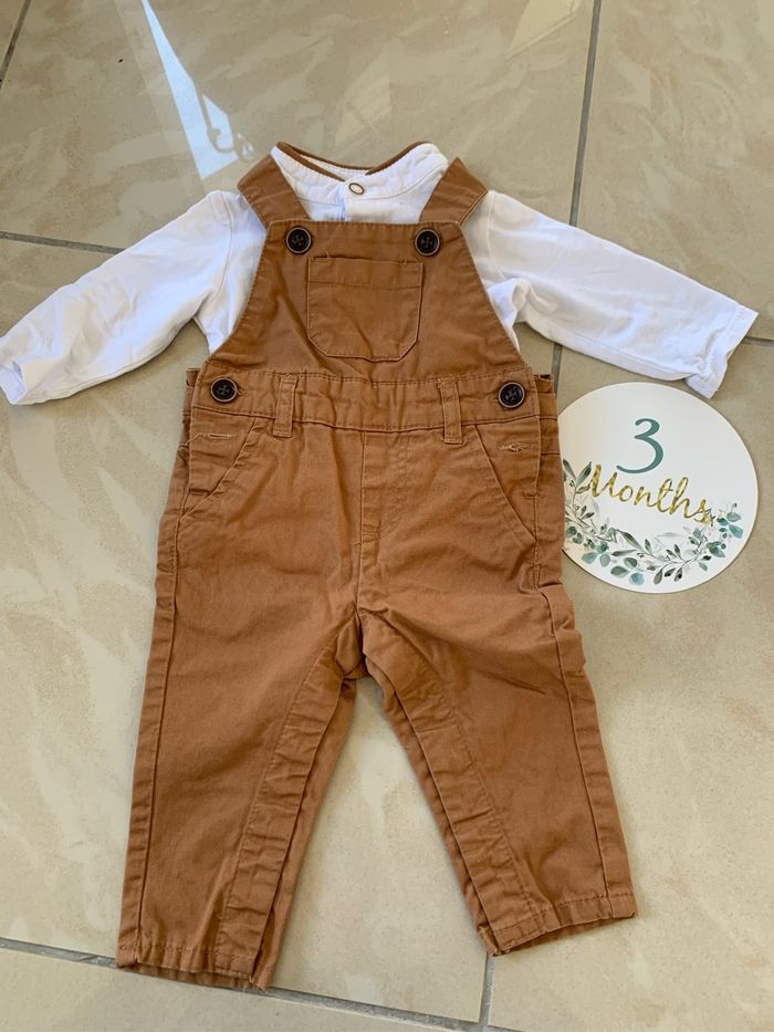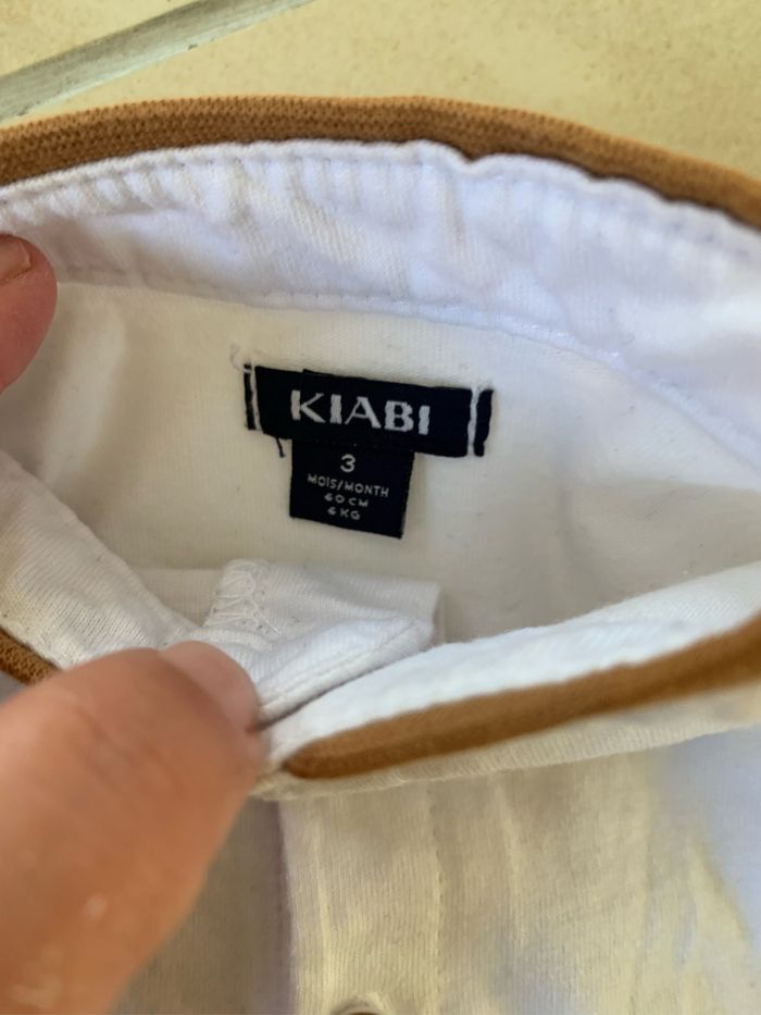Ensemble salopette marron et t.shirt col mao manches longues blanc Taille 3 mois Très bon état Kiabi