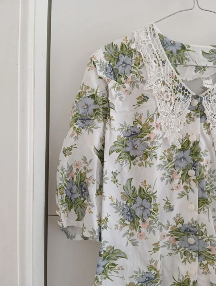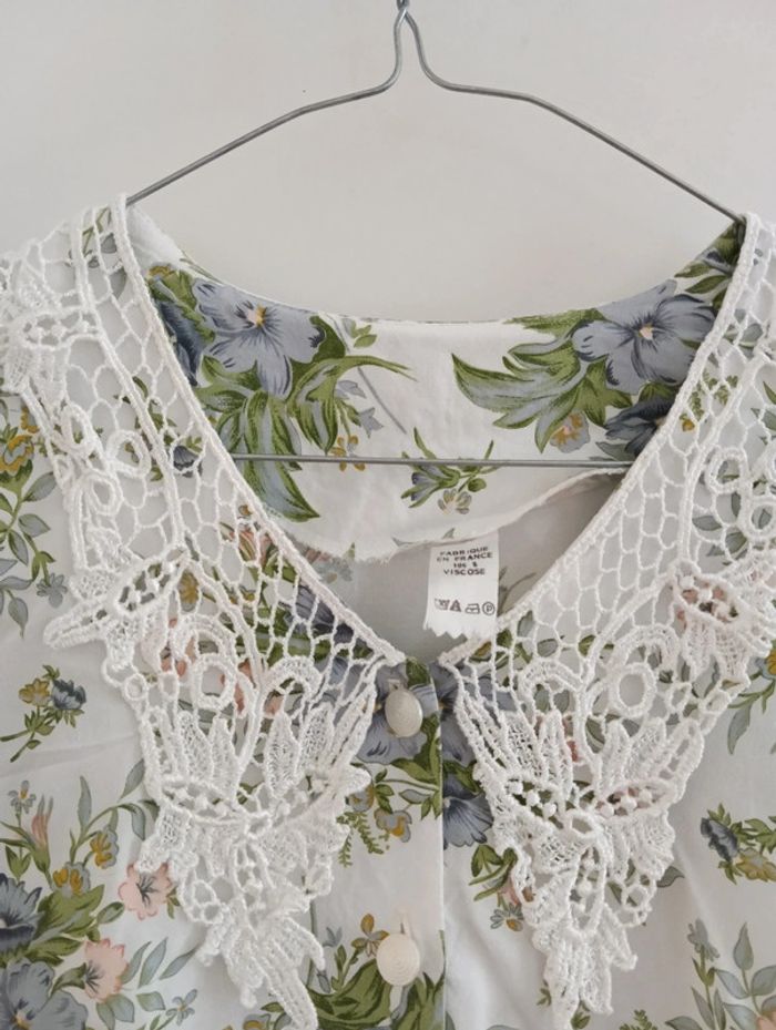 Chemise vintage à fleurs, col dentelle - photo numéro 6