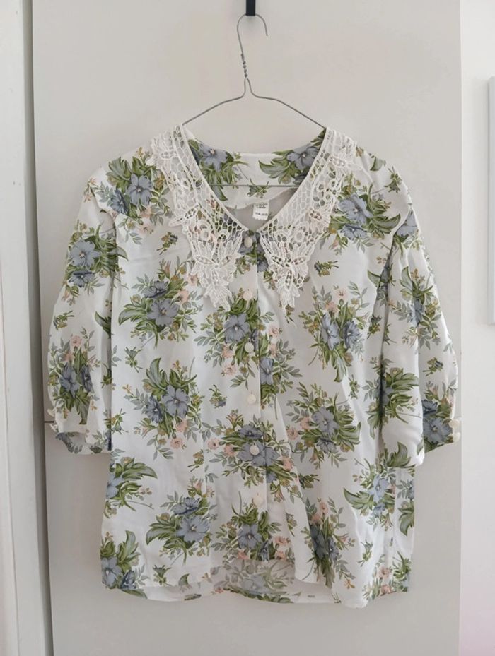 Chemise vintage à fleurs, col dentelle - photo numéro 1