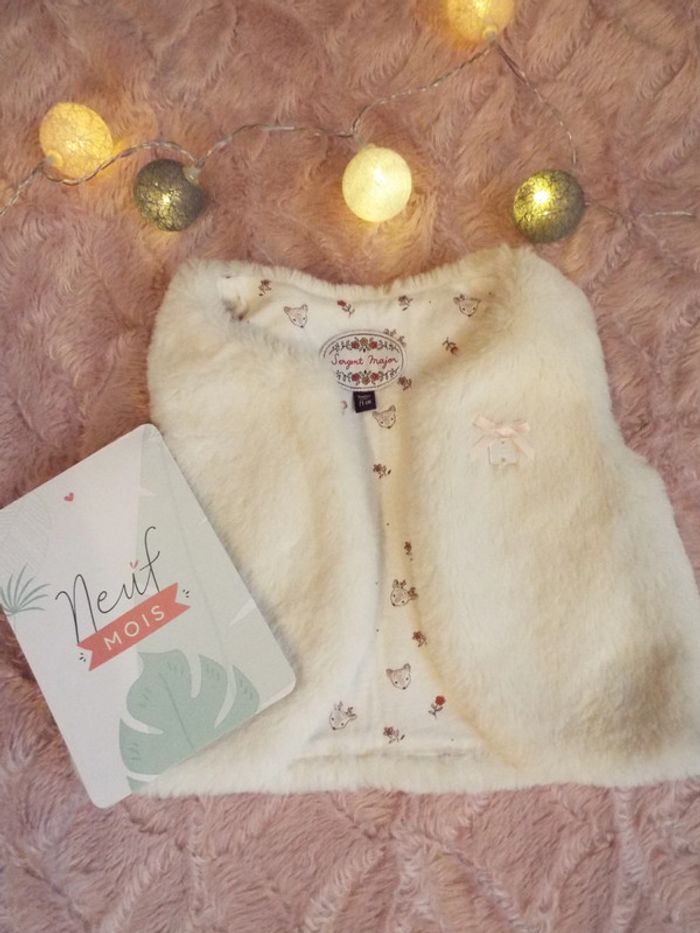 Gillet fausse fourrure sergent major taille 9 mois de couleur blanche #emiliebretaufille9mois