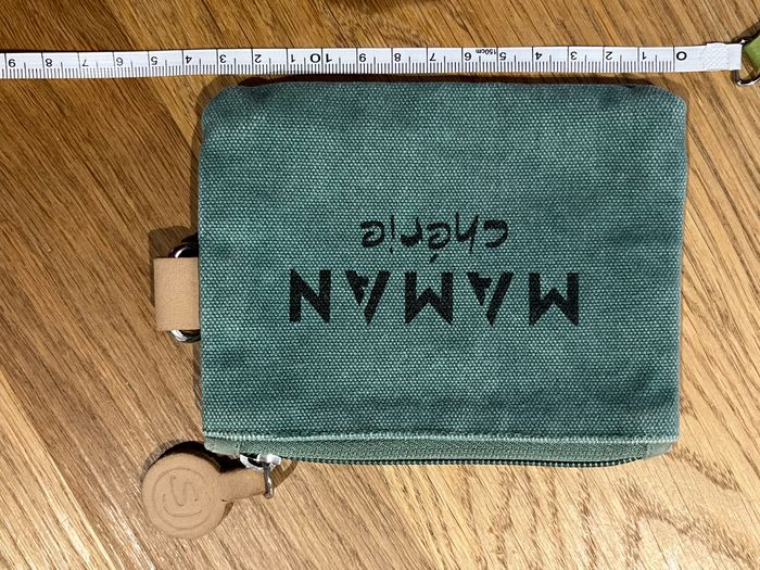 Pochette porte monnaie Maman Chérie Vert effet brossé délavé naturel d’origine  Visuel message texte noir Intérieur doublé Fermeture zip Boucle sur côté  Cf photos pour dimensions - photo numéro 6