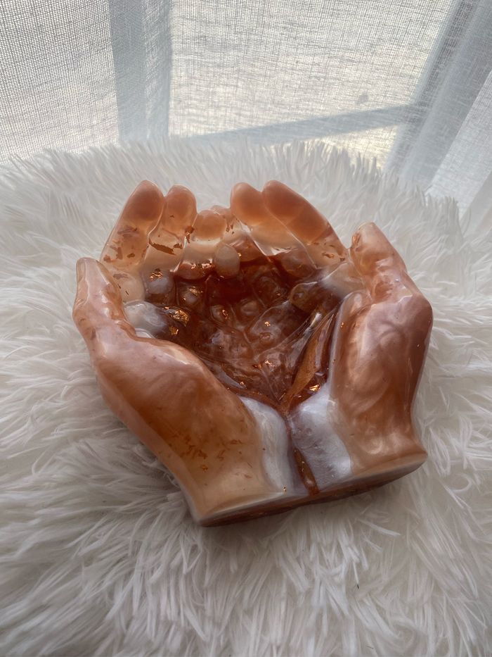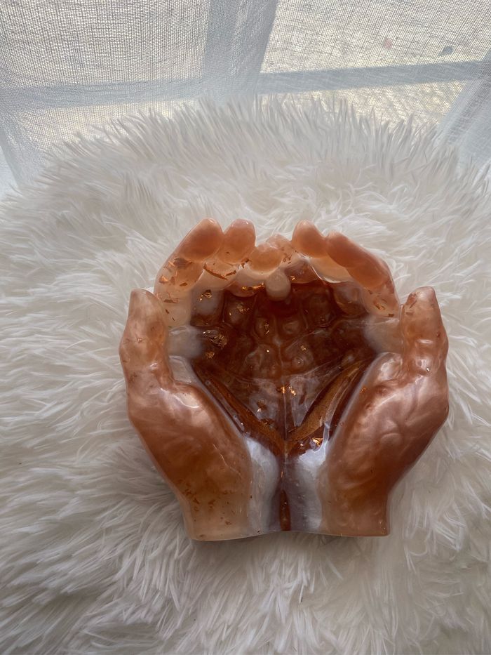 Vend vide poche main fabrication en résine epoxy . Coloris terra cota . Création unique