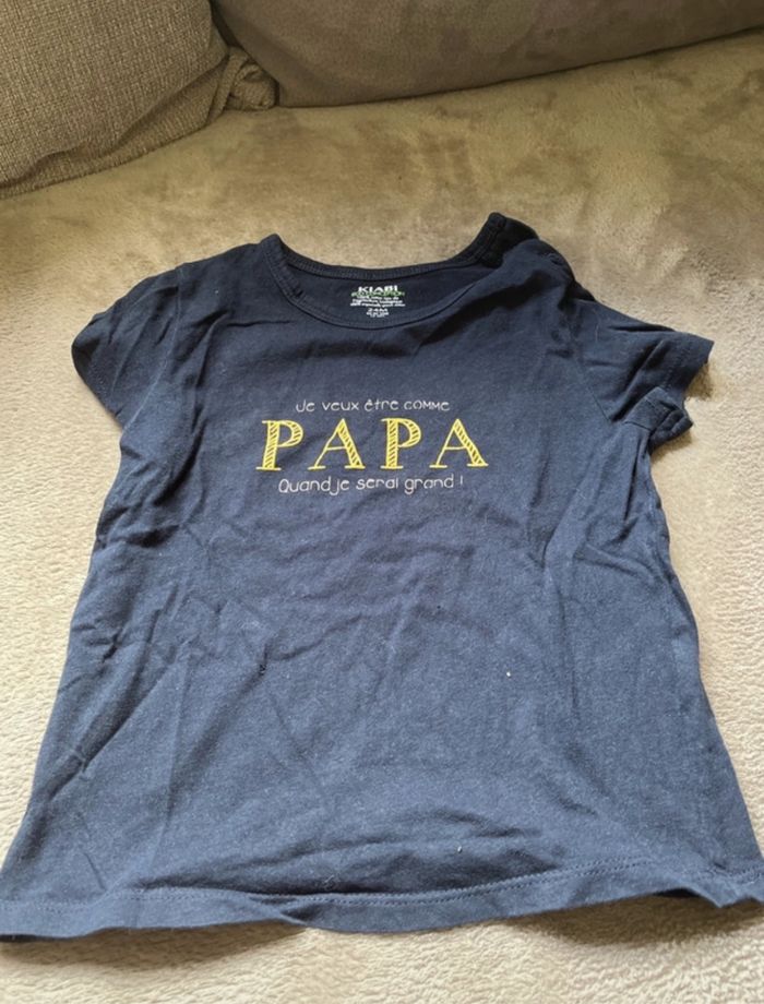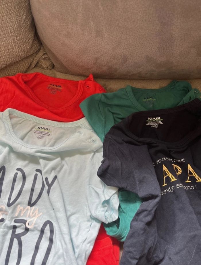 4 t-shirts Kiabi en très bon état ! 1 défaut sur le bleu marine (voir photo) D’autres habits en 24 mois à venir , n’hésitez pas à demander