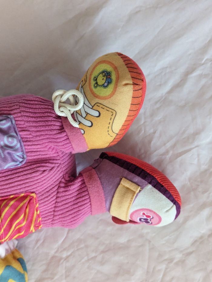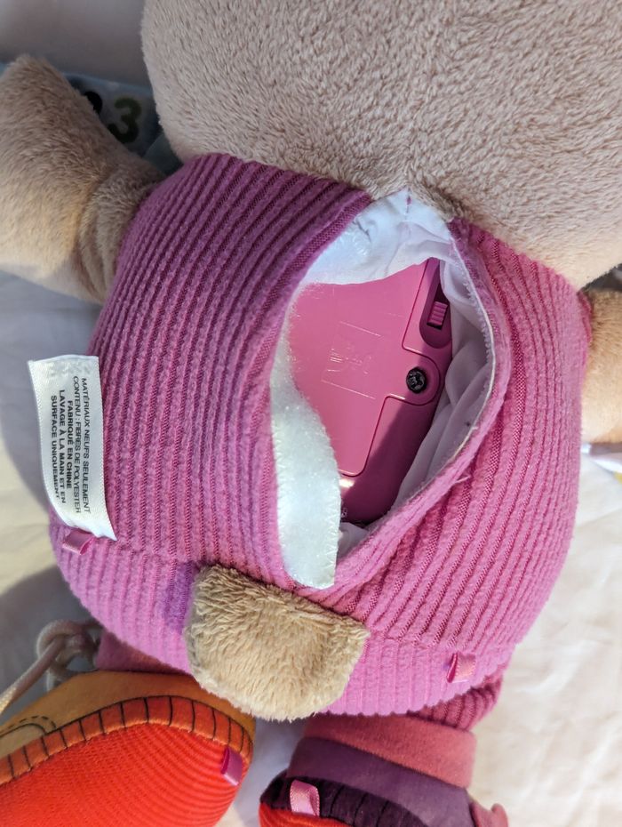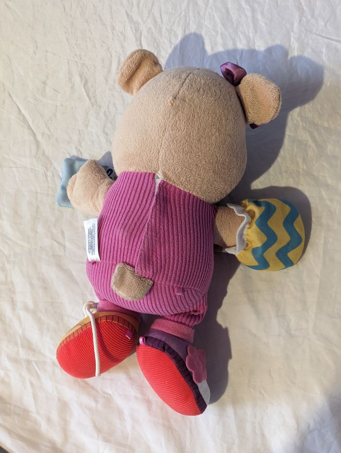 Petite Souris Rongeur Musical Paroles Sons avec une Salopette Mauve, une Petite Souris et un Mouchoir avec des Coeurs dans des Poches, un Livre dans la Main, un Flot Violet sur une Oreille et un Cœur Rouge "Animal - Faune". Paroles, Sons et Lumières (Sur le Cœur) en Appuyant sur les Mains, sur les Pieds ou sur le Cœur. Peluche pour les Petits Enfants et les Bébés. ☑ "Petite" Souris. ☑ Rongeur. ☑ Salopette "Mauve". ☑ Flot "Violet". ☑ Petite Souris et Mouchoir avec des Cœurs "Poches". ☑ Livre "Main". ☑ Cœur "Rouge". ☑ Musical "Paroles - Sons". ☑ Lumière "Cœur". ☑ Animal - Faune. Spécifications: Matériaux: Fibres de Polyester Dimensions de la Souris: Env. 33 x 27 x 13 cm Couleurs de la Souris: Marron - Beige - Noir - Rose - Rouge - Blanc Couleur de la Salopette: Mauve Couleurs du Cœur: Rouge - Jaune Couleur du Flot: Violet NB: PREPARATION: Sortir le Module Electronique en Plastique qui se Trouve dans le Dos de la Souris en Enlevant le Scratch. Ouvrir le Module à l'Aide d'un Petit Tournevis Cruciforme est y Insérer les 2 Petites Piles (Les Piles Fournies NE SONT PAS NEUVES). Refermer le Module et Replacer le dans le Dos de la Souris. ---> Pour une Très Longue Période Sans Utilisation, il est Fortement Conseillé de Retirer les Piles du Module Electronique en Plastique <--- MISE EN ROUTE: Actionner l'Interrupteur à 2 Niveaux vers le Haut (2 Différents Niveaux de Volumes du Sons). Pour Actionner les Paroles, les Sons et les Lumières, Appuyer sur les Mains, sur les Pieds ou sur le Cœur. ---> Si vous Désirez laissé les Piles mais mais que vous voulez Désactiver les Fonctions de Sons et Lumières, Permuter l'Interrupteur sur sa Position Basse. <--- Réf: pe89