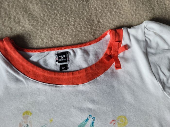 T-shirt terre de marins 8 ans En bon état, le dessin est un peu effacé, moins visible Blanc, col corail