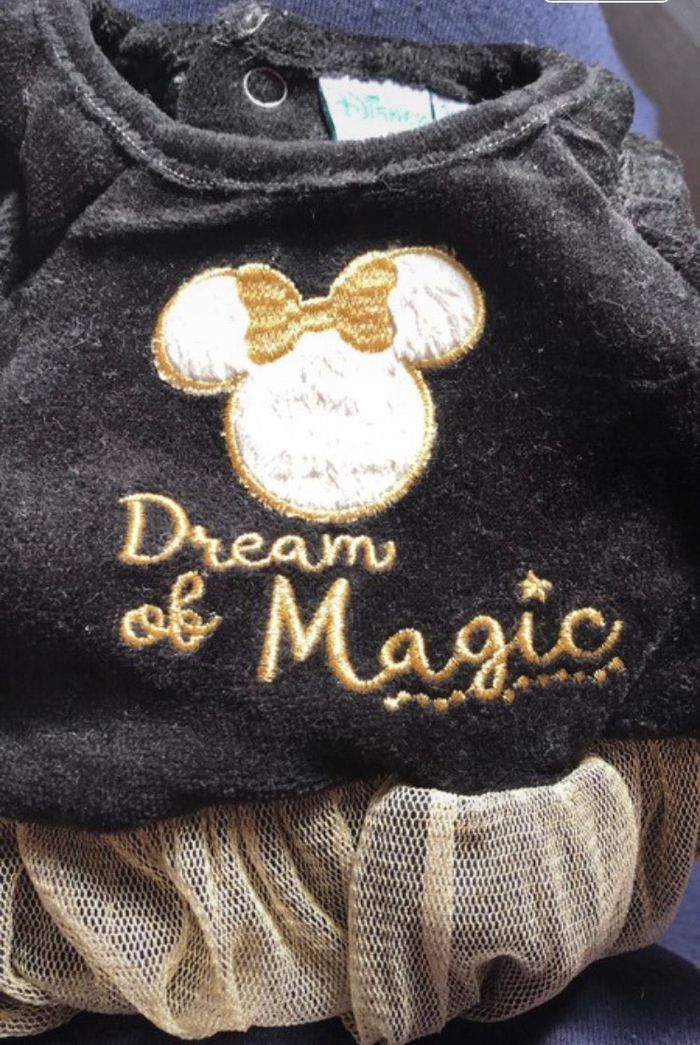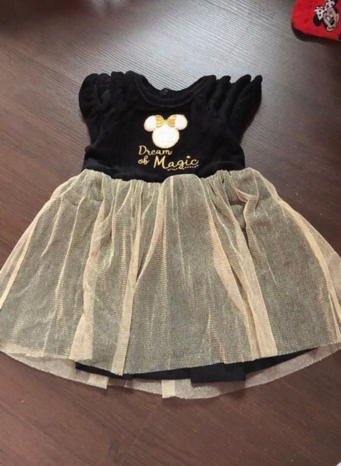 robe Minnie velours noir et volant doré porté une fois Taille 3 mois
