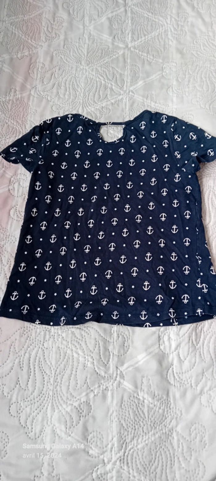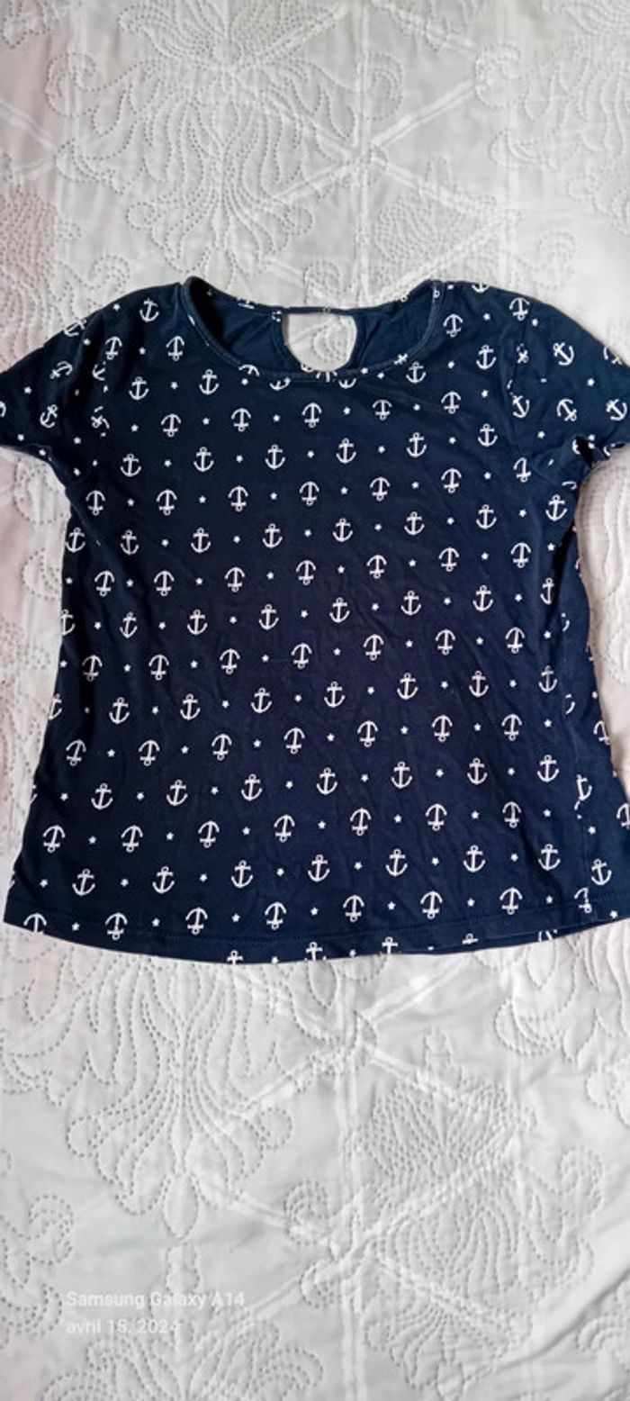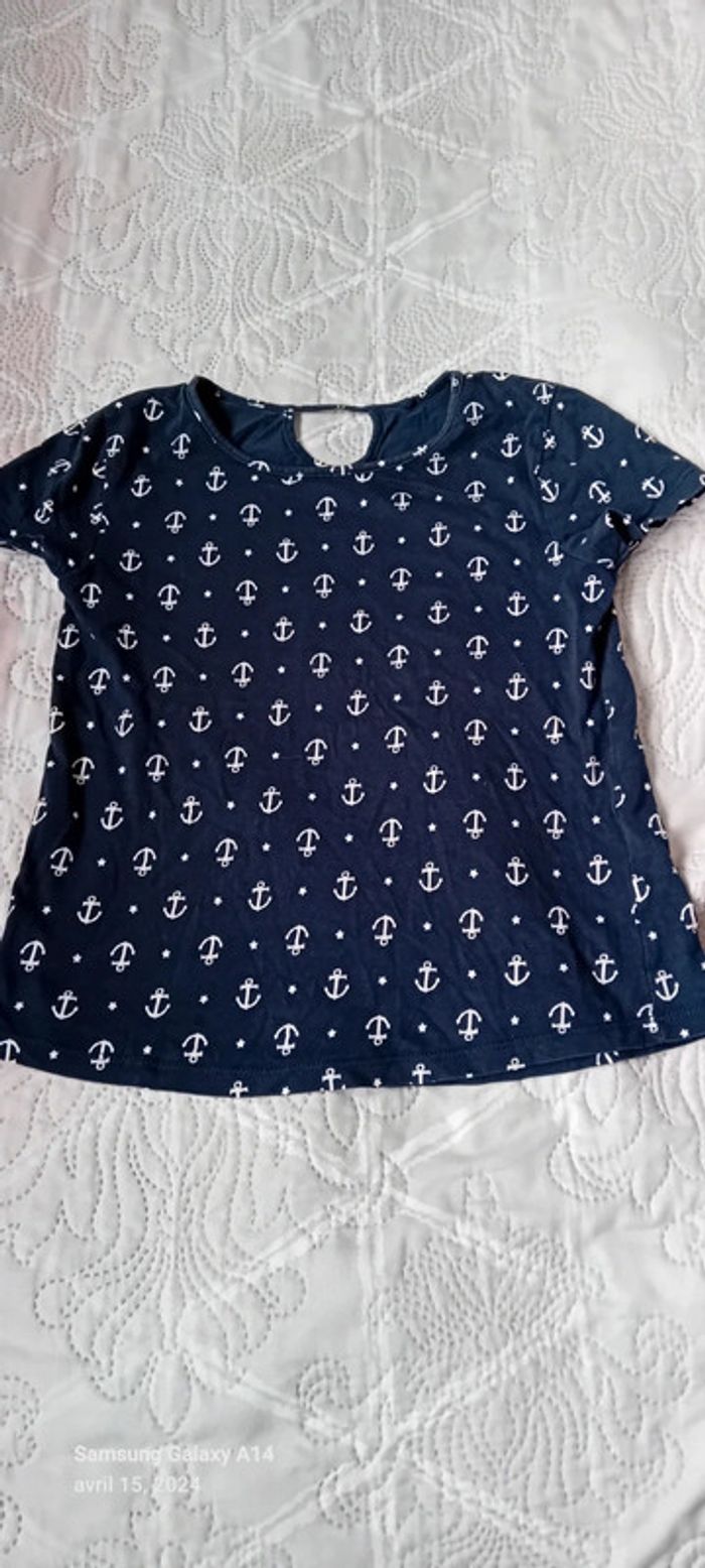 Tee-shirt manches courtes en coton motif ancres marines longueur 44 cm largeur aisselles à aisselles 36 cm largeur épaules 30 cm taille 9/10 ans très peu porté en très bon état #midole #midokefille #midolefille9ans #c&a #ancre #fille9ans