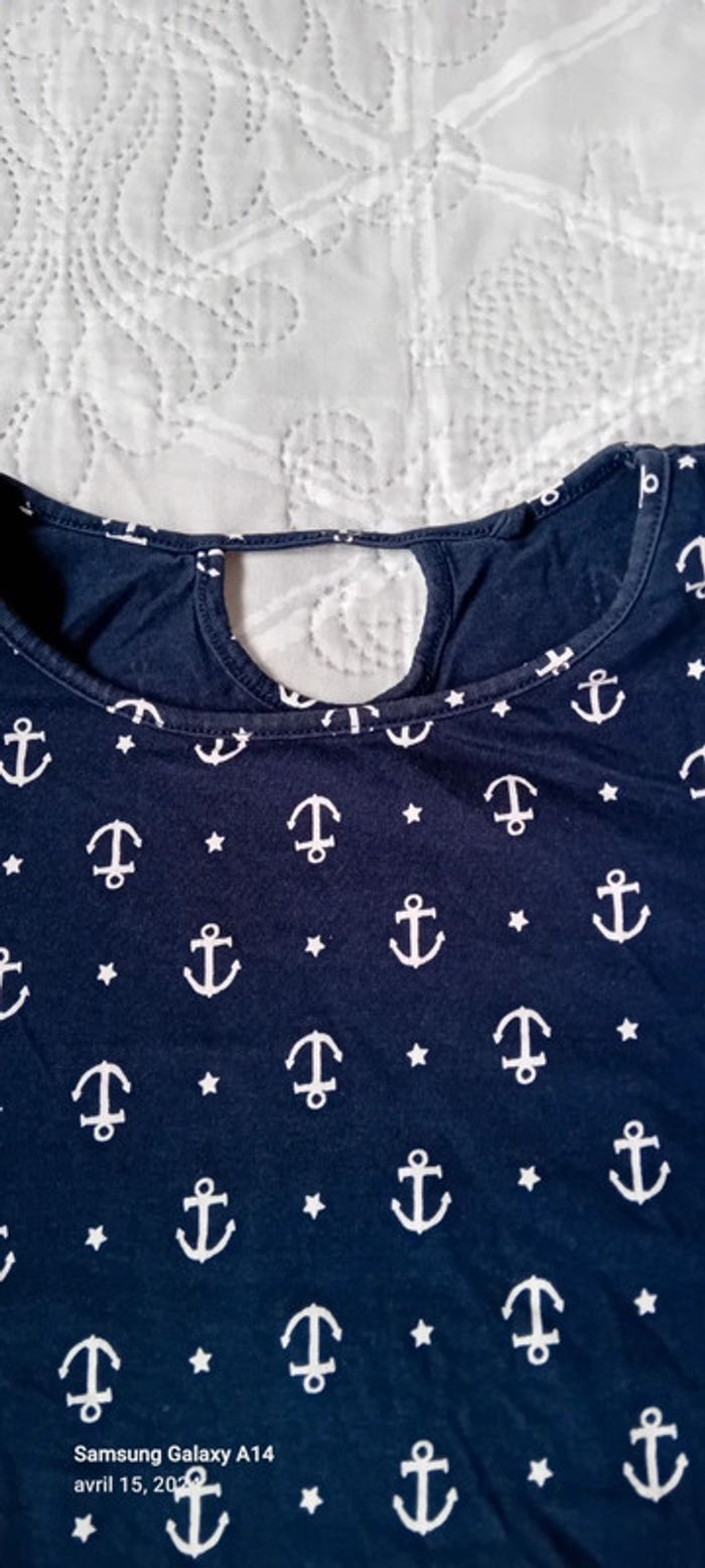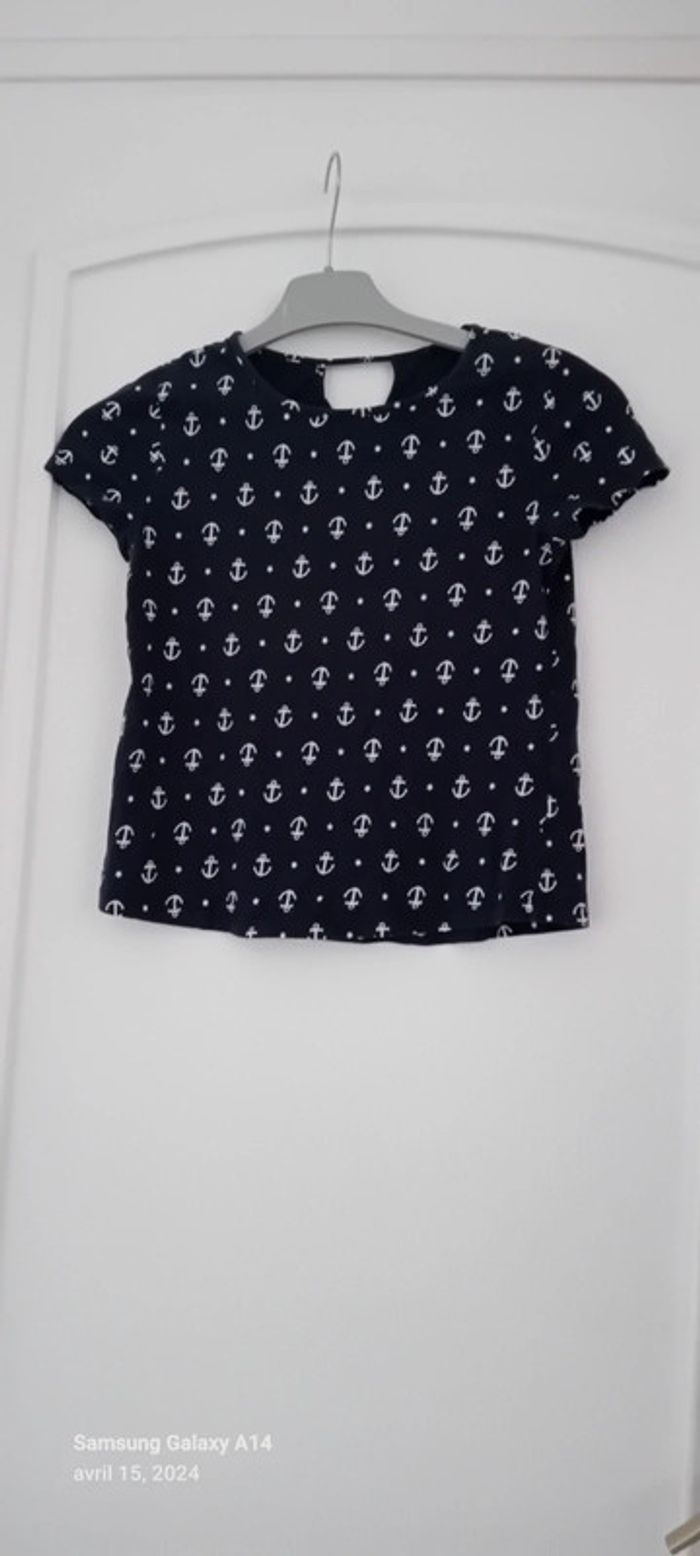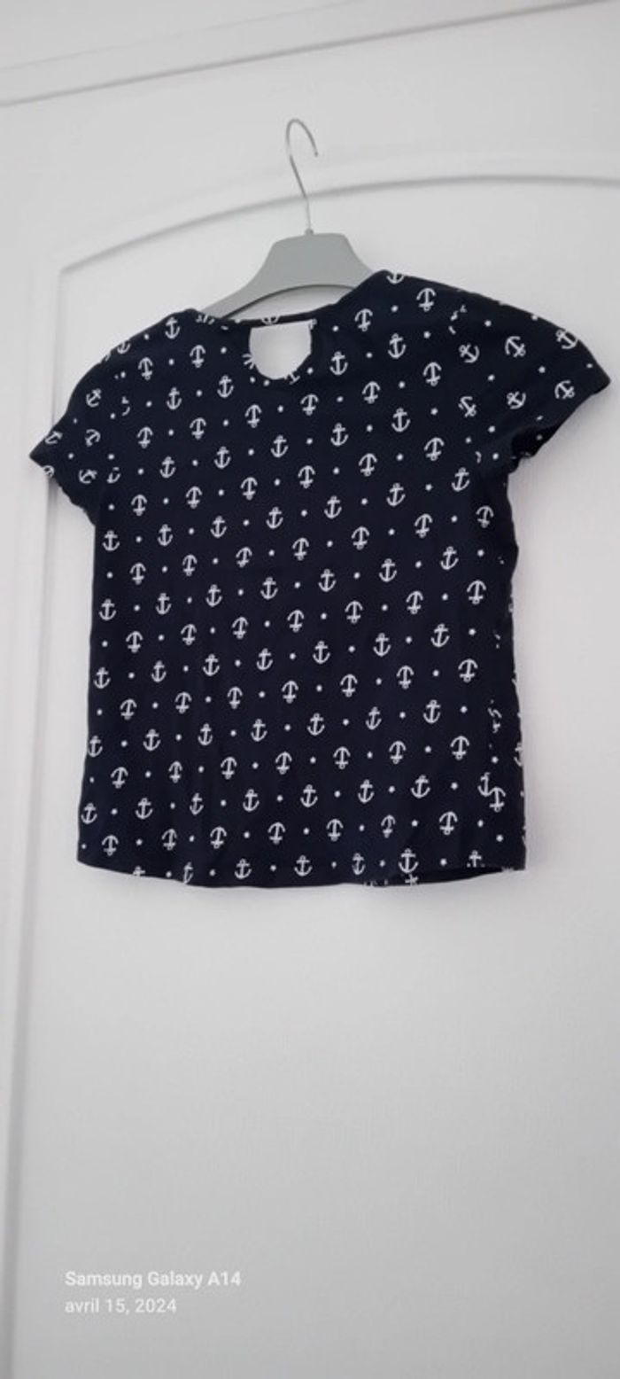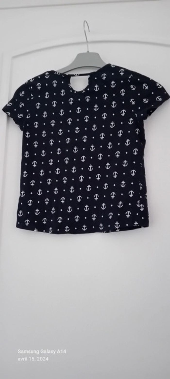 Tee-shirt manches courtes en coton motif ancres marines longueur 44 cm largeur aisselles à aisselles 36 cm largeur épaules 30 cm taille 9/10 ans très peu porté en très bon état #midole #midokefille #midolefille9ans #c&a #ancre #fille9ans
