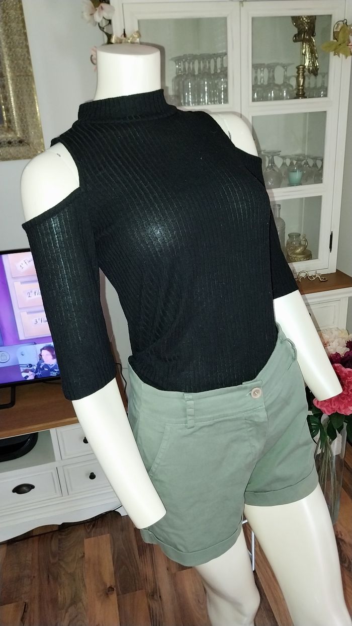 Top epaules dénudées Jennyfer noir côtelé Taille M Très bon état - photo numéro 10