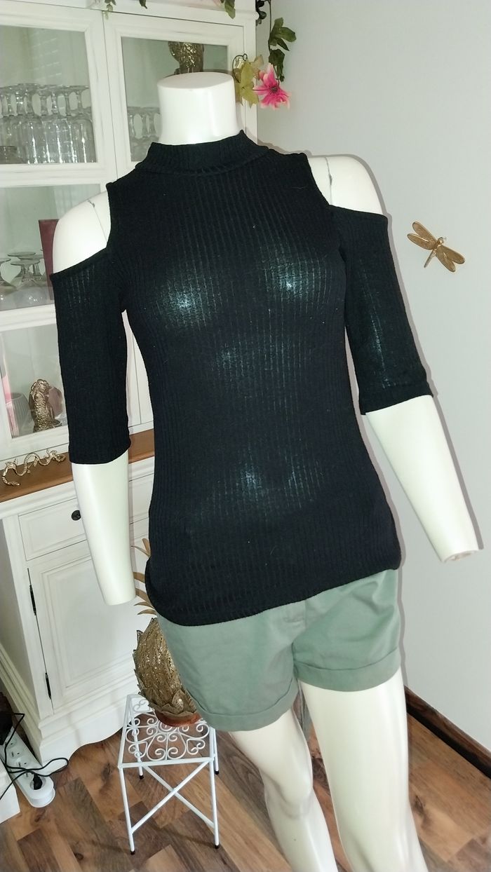 Top epaules dénudées Jennyfer noir côtelé Taille M Très bon état - photo numéro 9