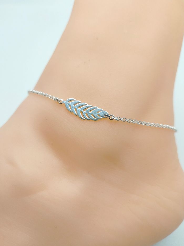 Chaîne de cheville plume en argent 925 - photo numéro 1