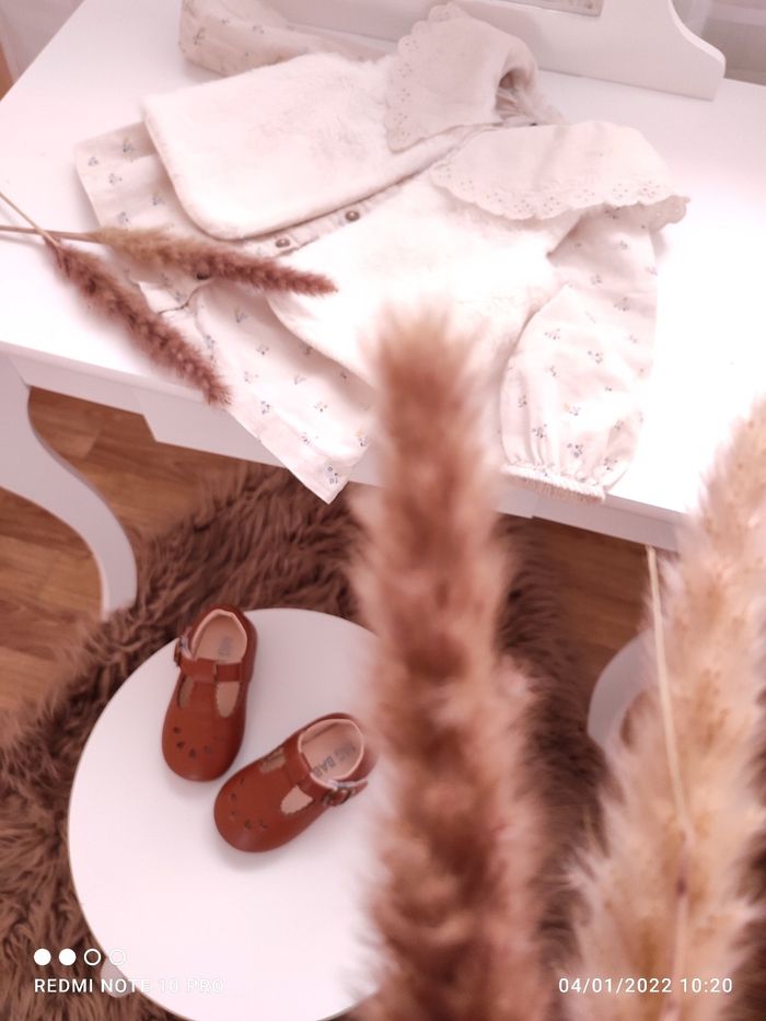 2 pièces :Chemise pour bébé fille de 9 mois Et gilet fausse fourrure blanc 9mois