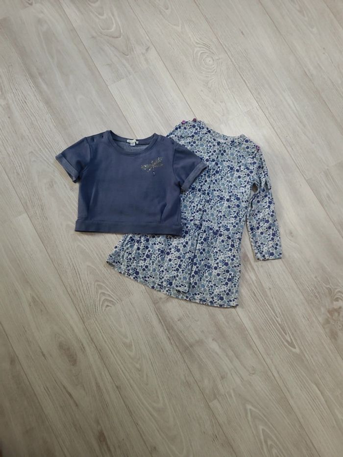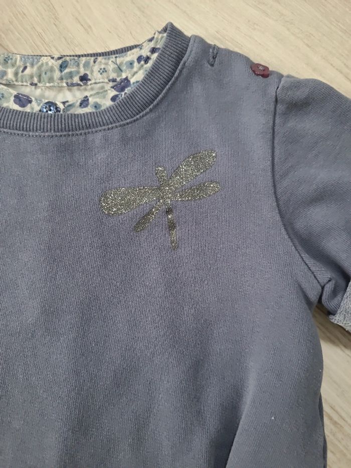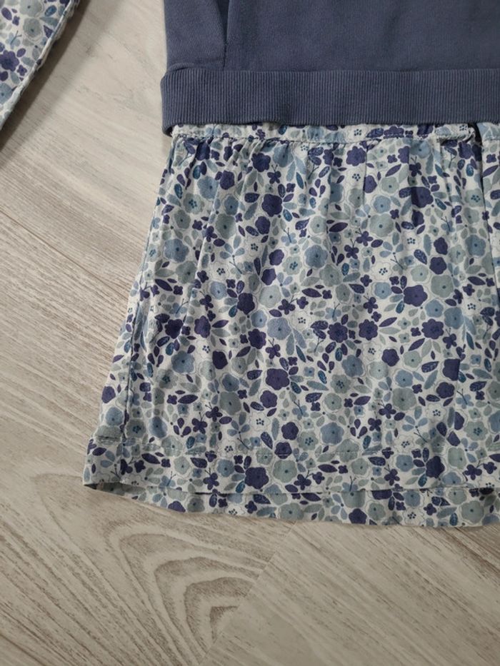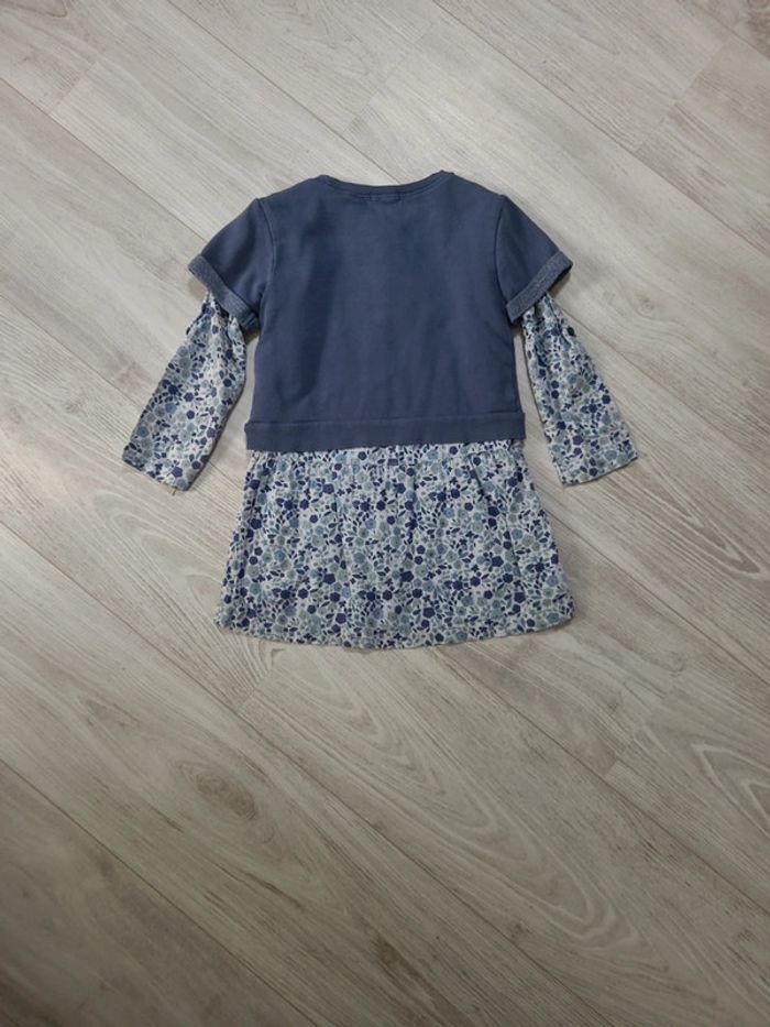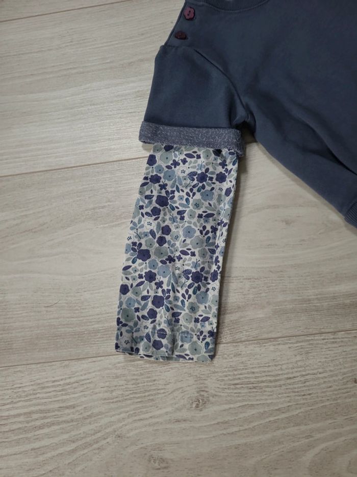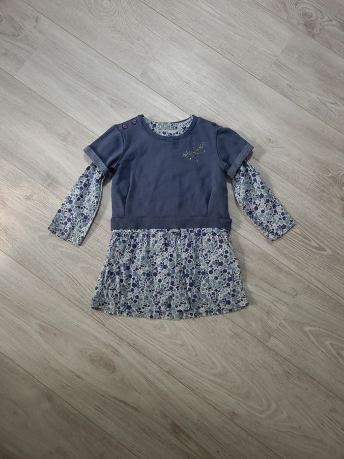 Robe, tunique, chemisier manches longues motifs florales. 2 en 1 avec sweat manches courtes par dessus. Possibilité de le retirer grâce aux boutons. Taille 3 ans. Porté mais encore en très bon état.