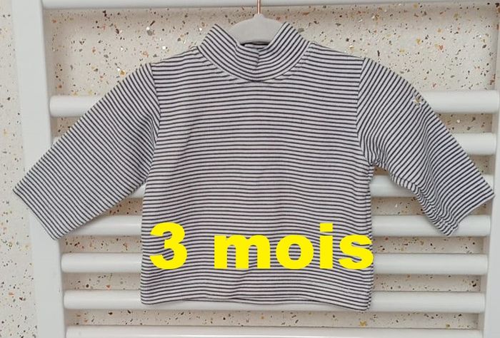 Sous pull rayé bleu marine blanc pâquerette sur manche Kitiwatt Taille 3 mois - photo numéro 1