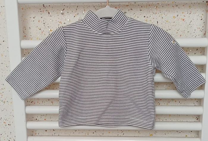 Sous pull rayé bleu marine blanc pâquerette sur manche Kitiwatt Taille 3 mois - photo numéro 2
