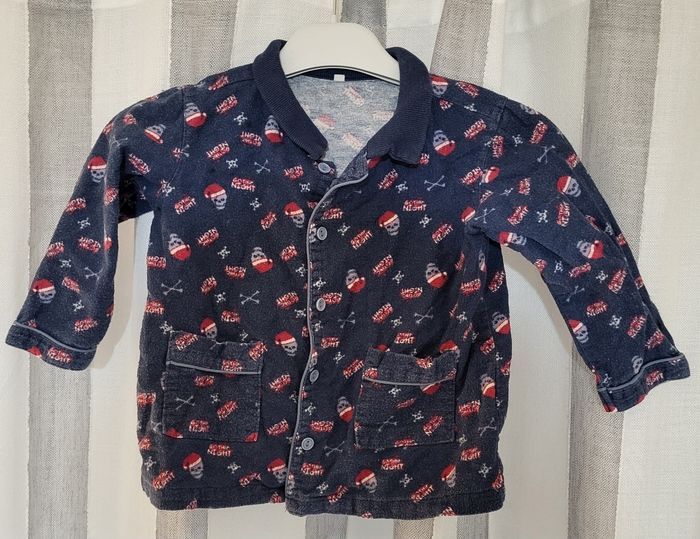 Haut de pyjama. Forme chemise avec bouton. 3 ans 100% coton Bleu marine. Bcp de pluche.