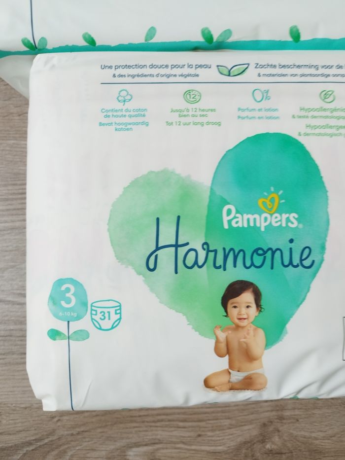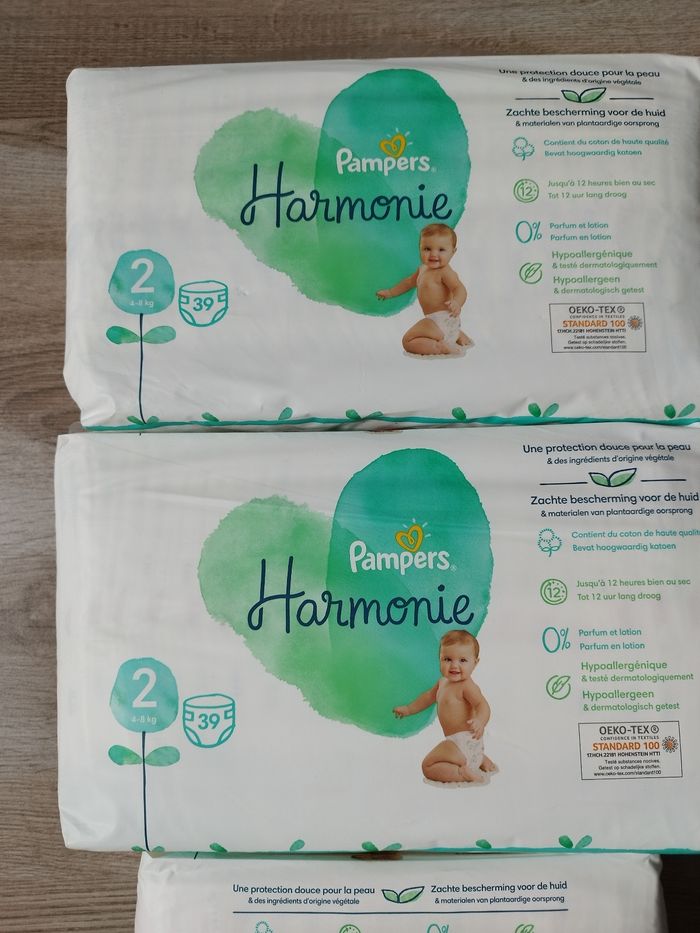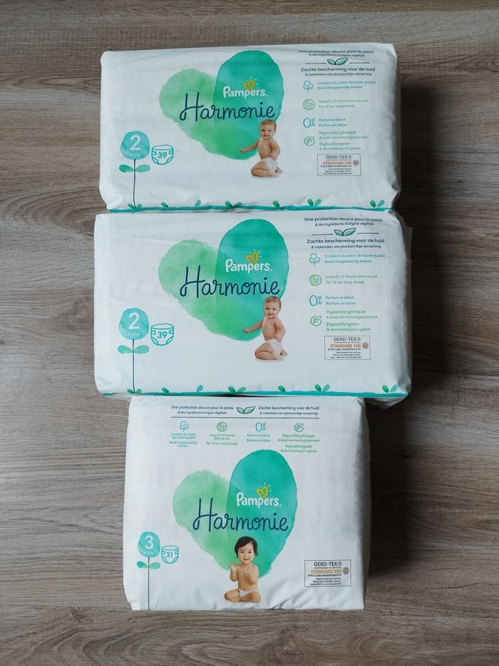 Vend un lot de 3 paquets de couches Pampers harmonie un paquet T3 deux paquet T2