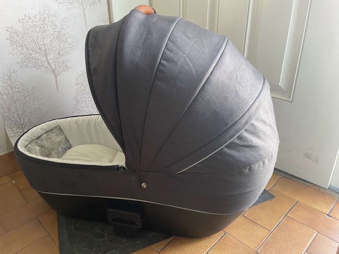 Bonjour je vend ma poussette 3 en 1 avec un sac à langer il l’habit de pluie . La poussette a des rayures sur les cotes et sur la barre de protection il y a un peux de cuir enlève mes ne gêne en rien le dessous du panier et arrache mes ne gêne rien non plus la poussette roule bien le cosy et un peux craquelé en haut à gauche mes ne gènes en rien et la nacelle et en bonne état je vend la poussette 130 € et je l’es acheté 225 euro à venir cherche sur courrieres pour plus de photos mp svp