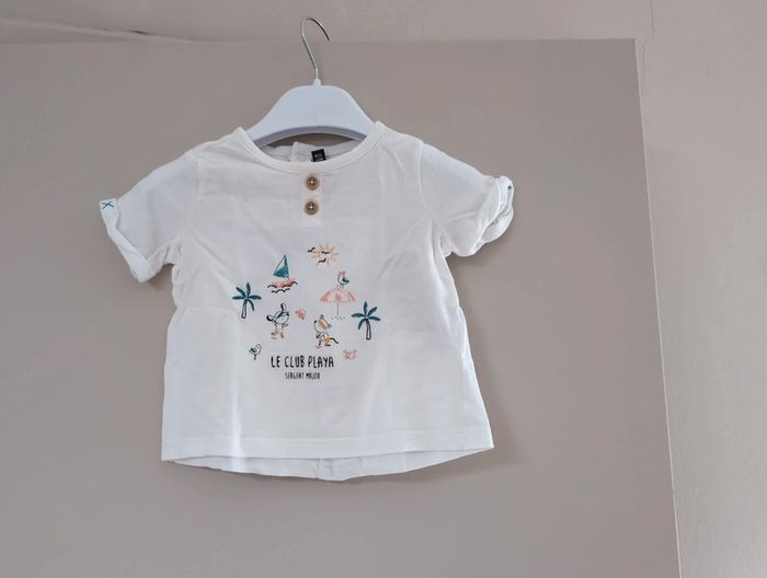 Etat impeccable PA: 15,99 EUR/ t-shirt Le T-shirt est un modèle en jersey, confortable qui n'entrave pas les mouvements de bébé. Manches courtes et col rond, il est décoré d'imprimés texturés. Les revers des manches sont fixes et l'ouverture du col permet un habillage plus confortable. On associe ce T-shirt à un Short pour un style estival à croquer. T-shirt écru en jersey Inspiration décontracté Manches courtes Impressions texturées Pressions au col