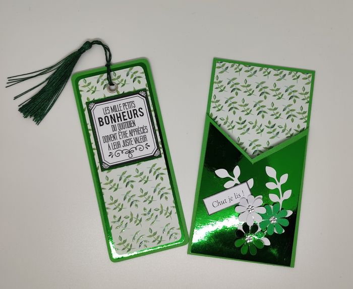 Marque page fait main avec sa pochette vert - photo numéro 1