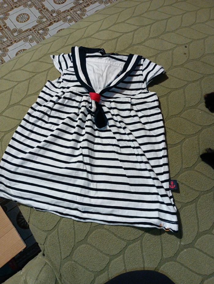 Robe rayée esprit marin Avec petit nœud et ponpon derrière, Taille 18 mois