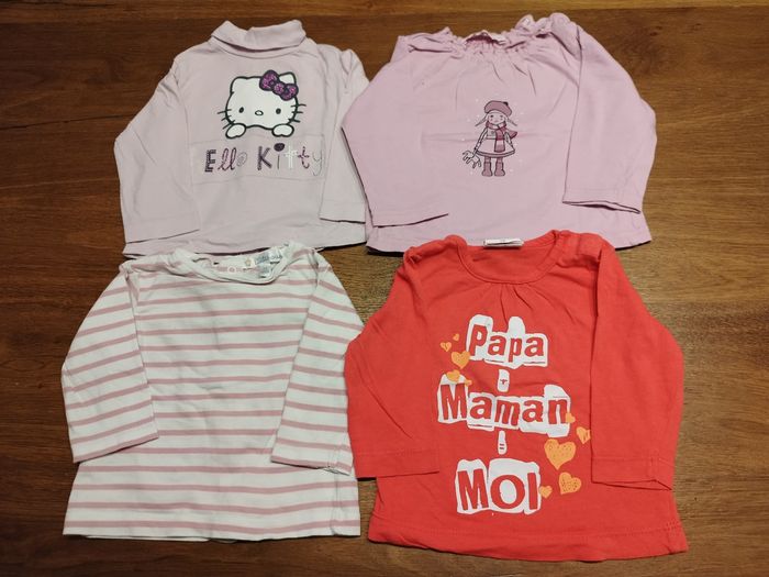 4 tee-shirts à manches longues, 3 mois, en bon état.