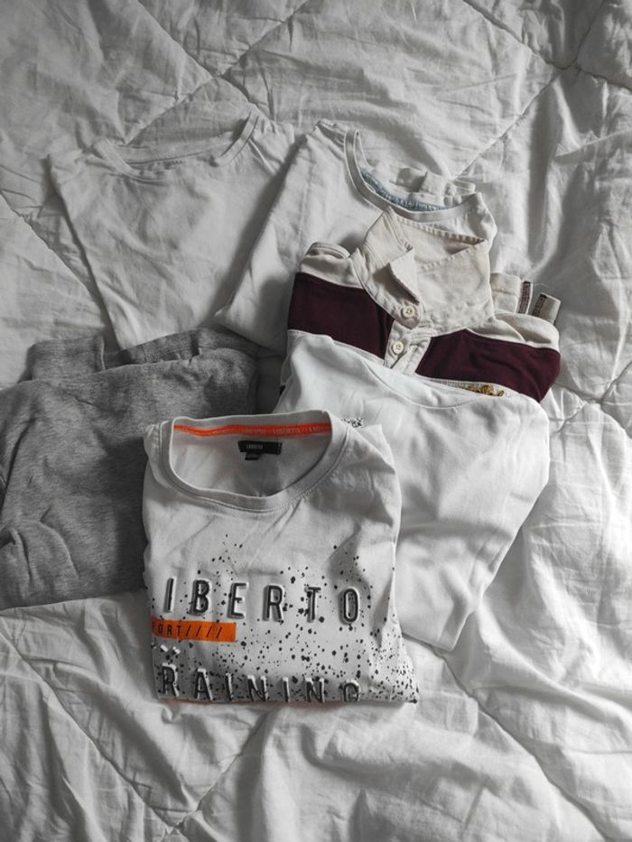 1 t shirt marque liberto 2 t shirts col roulé blanc et gris marque Kiabi 1 t shirt blanc marque Kiabi 1 t shirt blanc marque sergent major 1 polo à rayures écru et bordeaux marque sergent major
