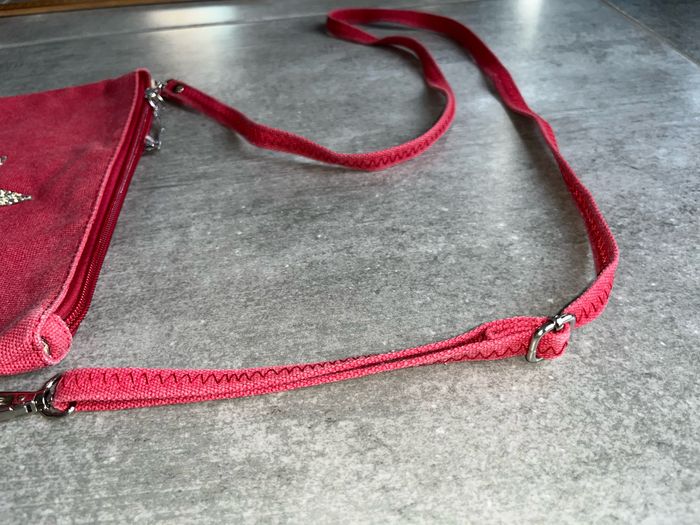 Sac à main sac à bandoulière femme  Pochette Made in Italy Rouge effet délavé naturel d’origine Visuel étoile strass - photo numéro 8