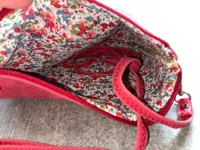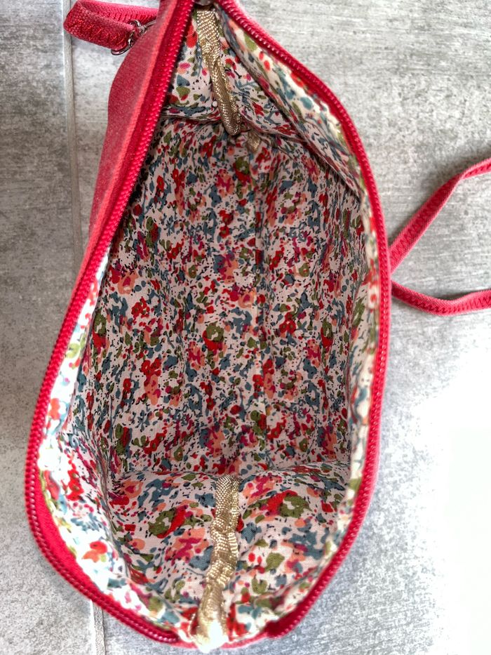 Sac à main sac à bandoulière femme Pochette Made in Italy Rouge effet délavé naturel d’origine Visuel étoile strass Fermeture zip Intérieur doublé fleurs Liberty Bandoulière amovible réglable Attaches argentées Format rectangulaire Cf photos pour dimentions