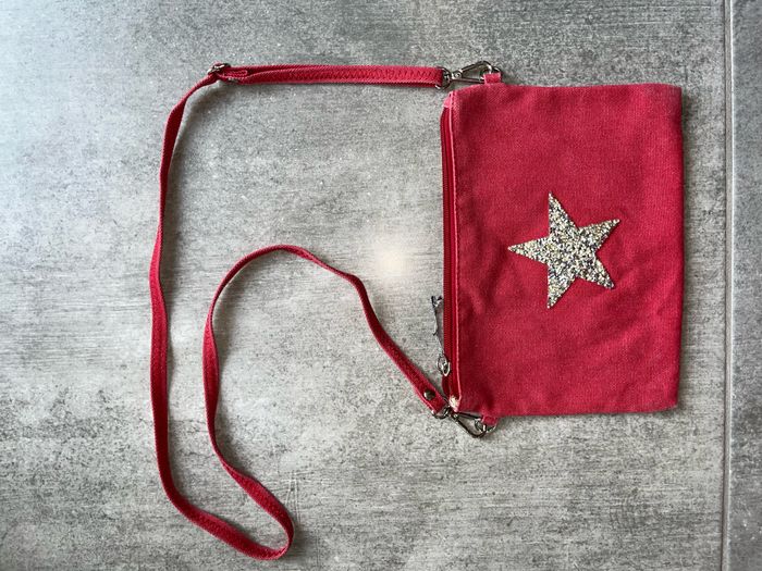 Sac à main sac à bandoulière femme  Pochette Made in Italy Rouge effet délavé naturel d’origine Visuel étoile strass - photo numéro 1