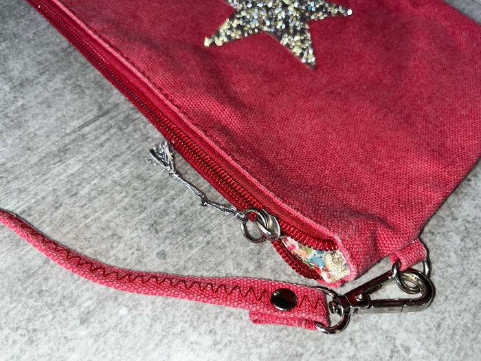 Sac à main sac à bandoulière femme  Pochette Made in Italy Rouge effet délavé naturel d’origine Visuel étoile strass - photo numéro 9