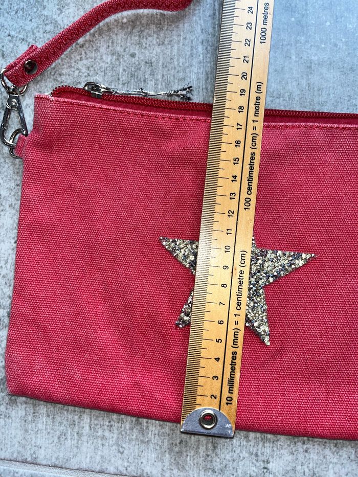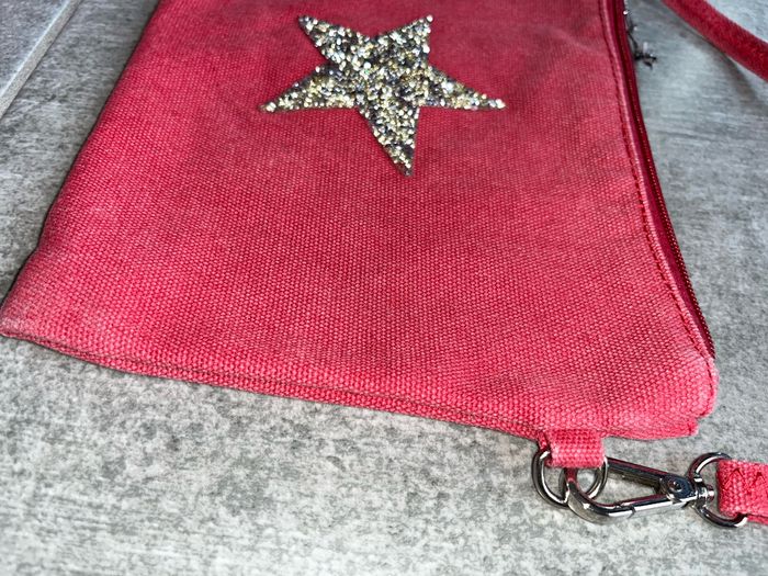 Sac à main sac à bandoulière femme  Pochette Made in Italy Rouge effet délavé naturel d’origine Visuel étoile strass - photo numéro 2