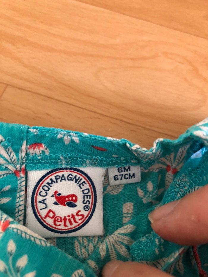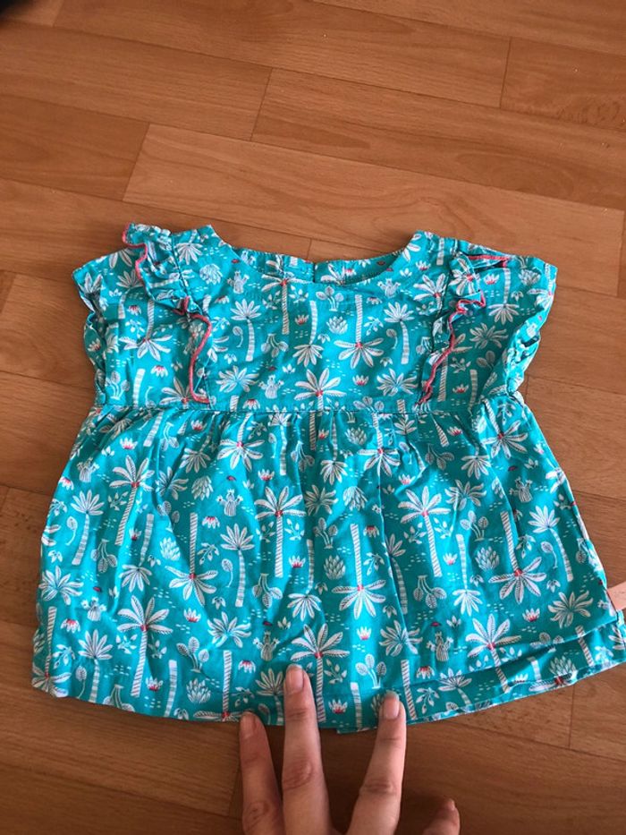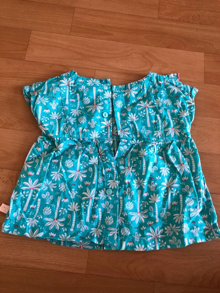 Chemisier bleu turquoise à motifs cocotier. 6 mois - La compagnie des petits Très bon état Réduction activée sur les lots