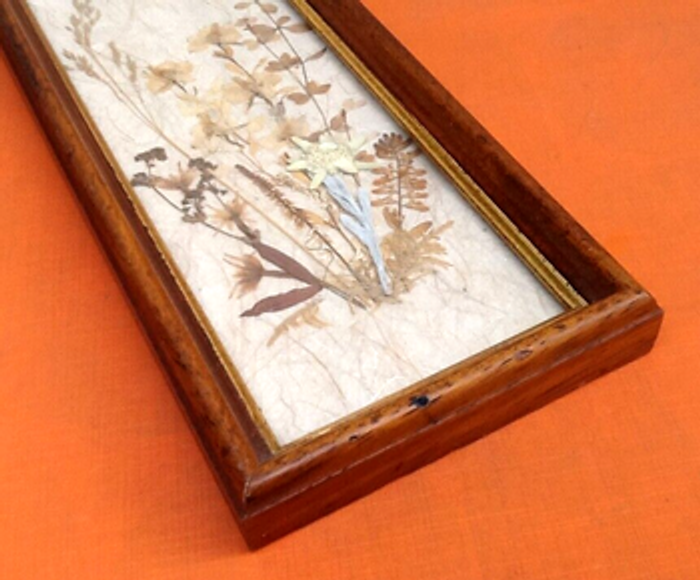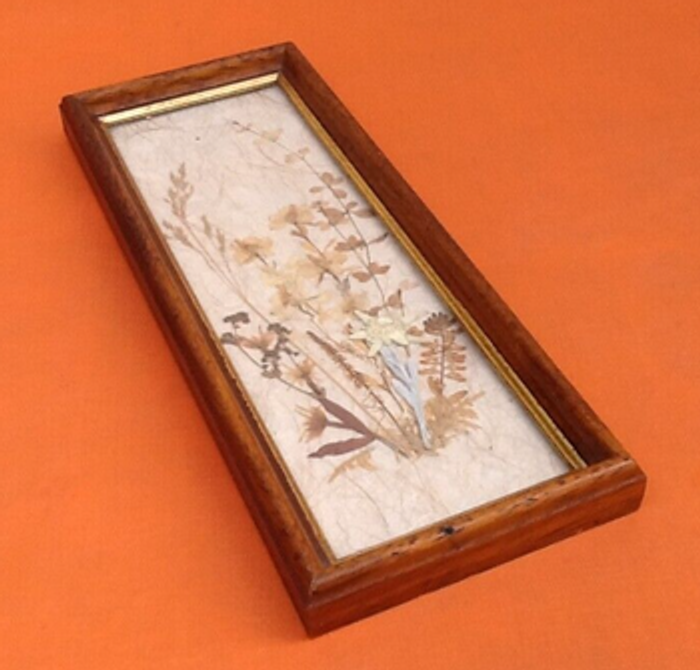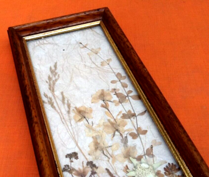 Herbier à suspendre Fleurs séchées Encadrement bois mouluré avec dorure Longueur : 310mm Largeur : 125mm Hauteur : 25mm Poids : 295grs