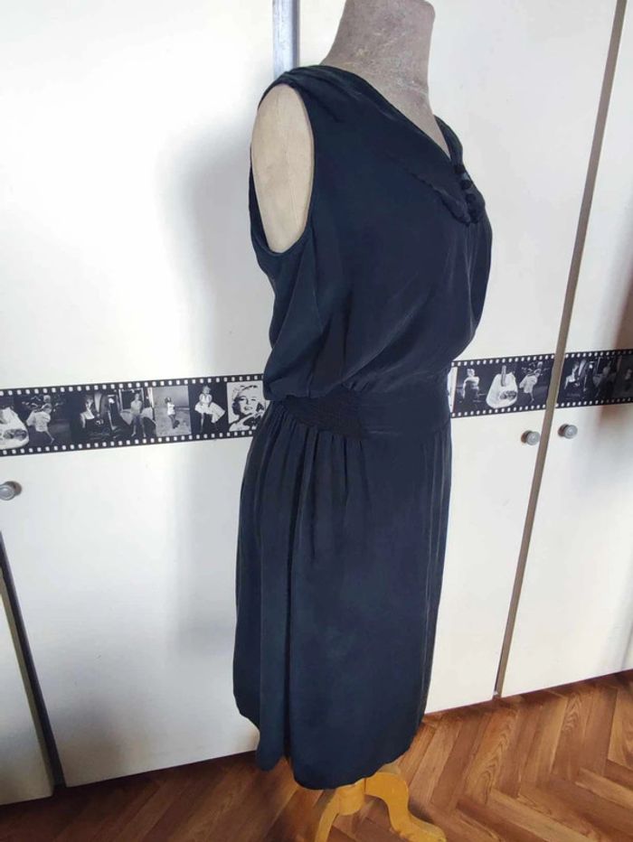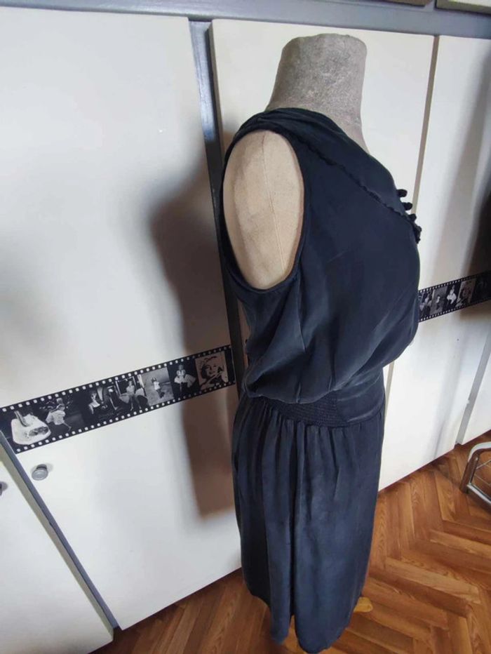 Robe en soie, matière agréable, douce au toucher. Marque naf naf. Noire qui tire un peu vers le gris foncé avec la matière. #mov59Femme #petiterobenoire #occasion #légère