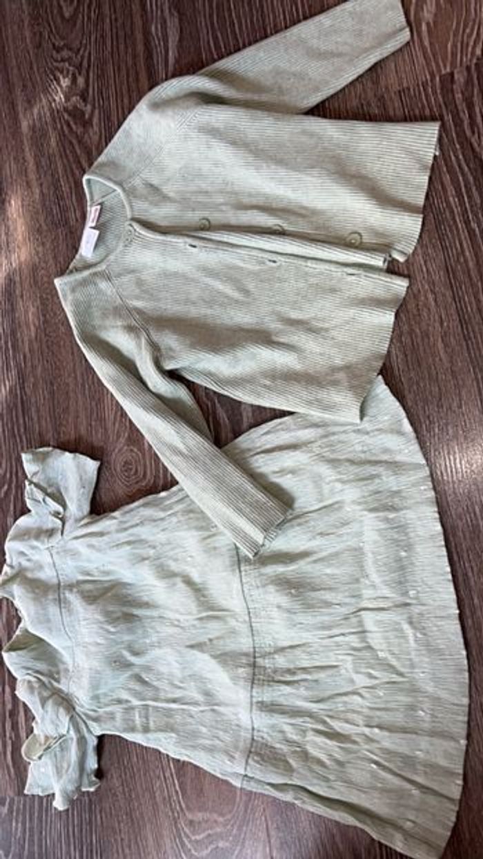 Vend robe avec gilet de couleur Vert d’eau En bon état De marque Zara Taille 2-3 ans