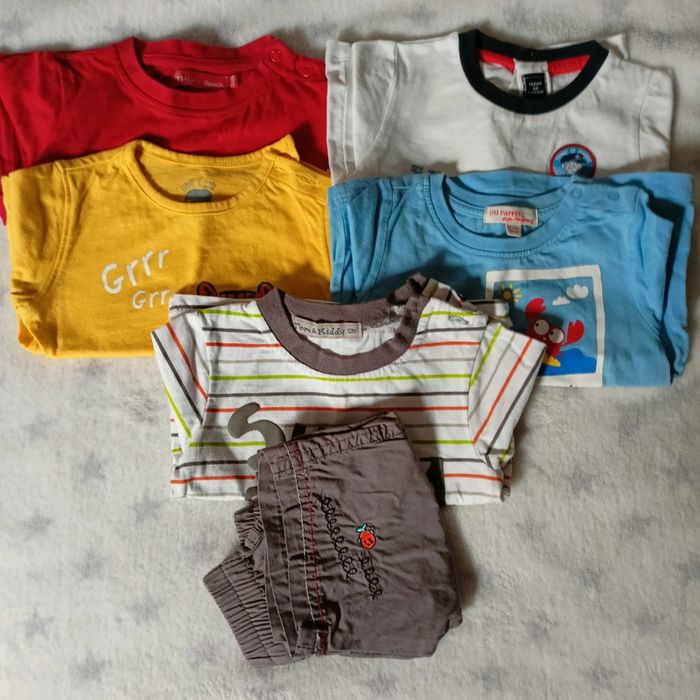 Lot été garçon 📏 12 mois Comprenant : * 4 t-shirt manches courtes * 1 ensemble t-shirt manches courtes et short Très bon état #audreyd182612moisgarçon