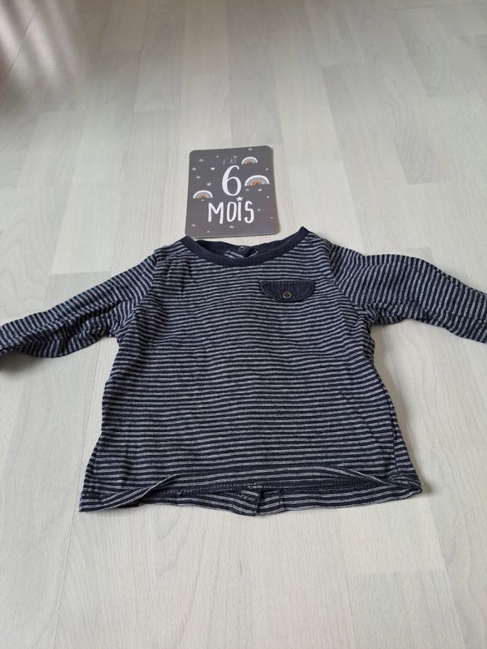 T-shirt manches longues Taille 6 mois Col très légèrement bouloché