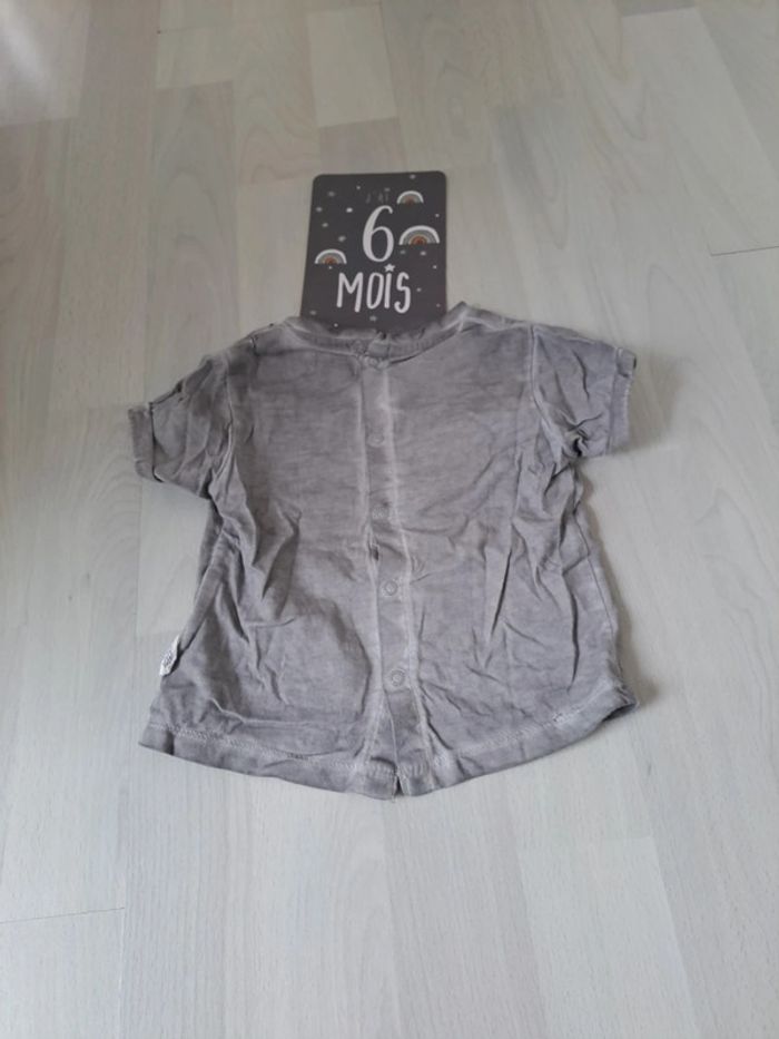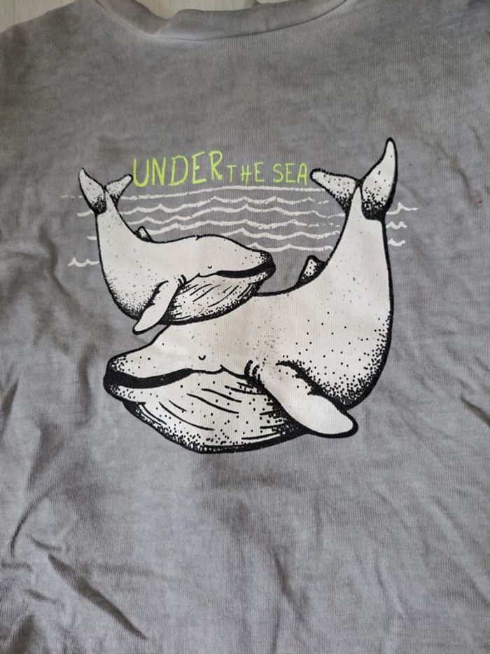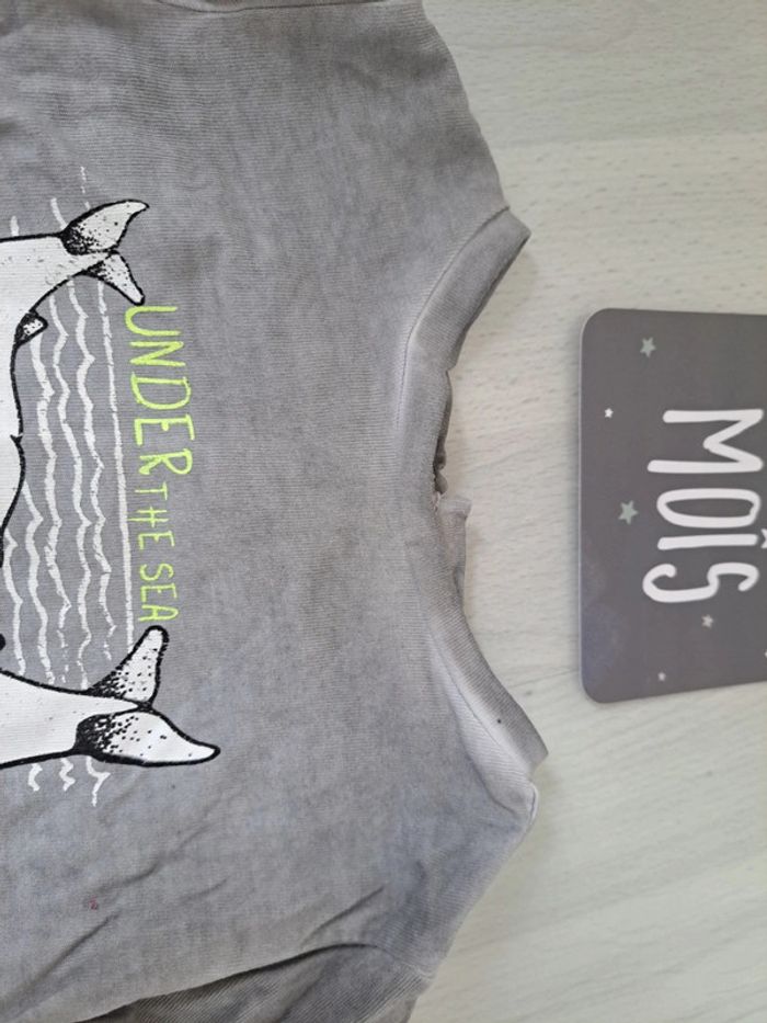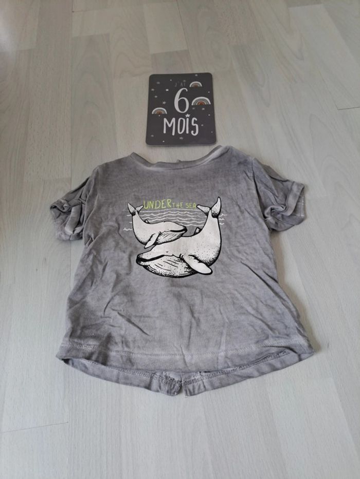 T-shirt manches courtes Effet délavé Taille 6 mois Dessin grosse baleine un peu effacé voir photo