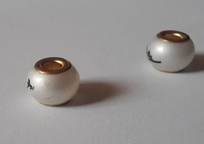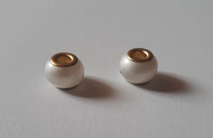 Charms perles noires et blanches Diamètre intérieur : 5 mm Très bon état, traces sur une des deux perles (voir photo) Vente possible à l'unité / lots modifiables 6 euros #picolo354bijoux #picolo354charmsperles
