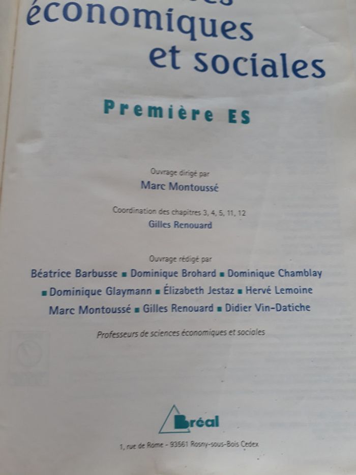 Livre Sciences économiques et sociales - Première ES Bréal Couverture protegée avec protège livre mais légèrement abîmé et quelques pages avec passages surlignés mais interieur nickel (voir photos) 15 euros #picolo354livresscolaires