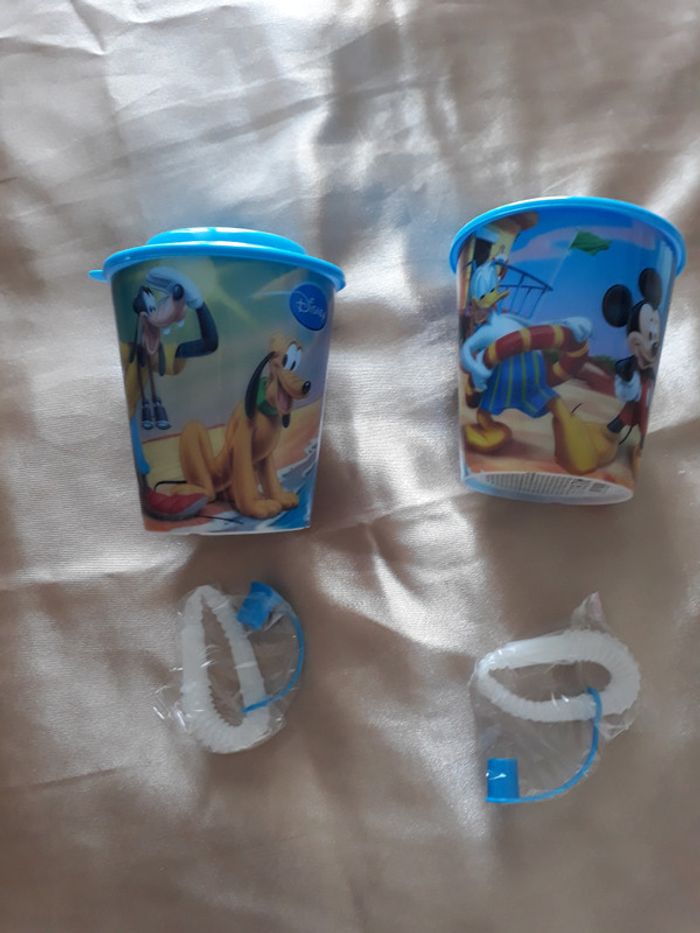 Verres + pailles Mickey, Dingo, Pluto, Donald Les 2 sont identiques NEUF 6 euros #picolo354vaissellesenfants #picolo354disney #picolo354mickey #picolo354artsdelatable