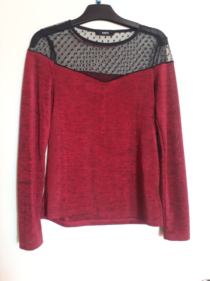 Pull fin avec effet dentelle (pas véritable dentelle) Couleur bordeau et noir Très peu porté Taille indiquée S, mais convient très bien à du M 7 euros #picolo354vêtementsfemmes