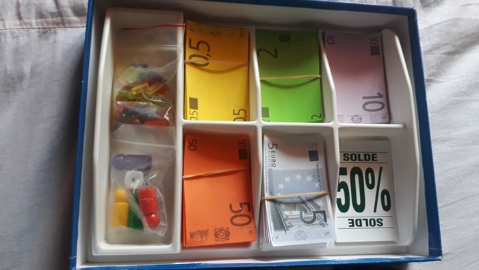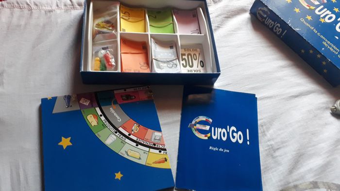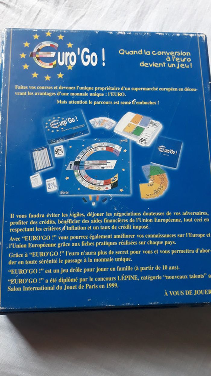 Jeu Euro'Go Faites vos courses et devenez l'unique propriétaire d'un supermarché européen en découvrant les avantages d'une monnaie unique : l'euro. Mais attention le parcours est semé d'embuches ! De 2 à 4 joueurs ou par équipe Jeu diplômé par le concours LÉPINE, catégorie "nouveaux talents" au Salon International du Jouet de Paris en 1999 Fabriqué en France A partir de 10 ans Carton abîmé avec l'usure, plastique fissuré (voir photos) mais jeu en très bon état et complet 10 euros #picolo354jeuxdesociété