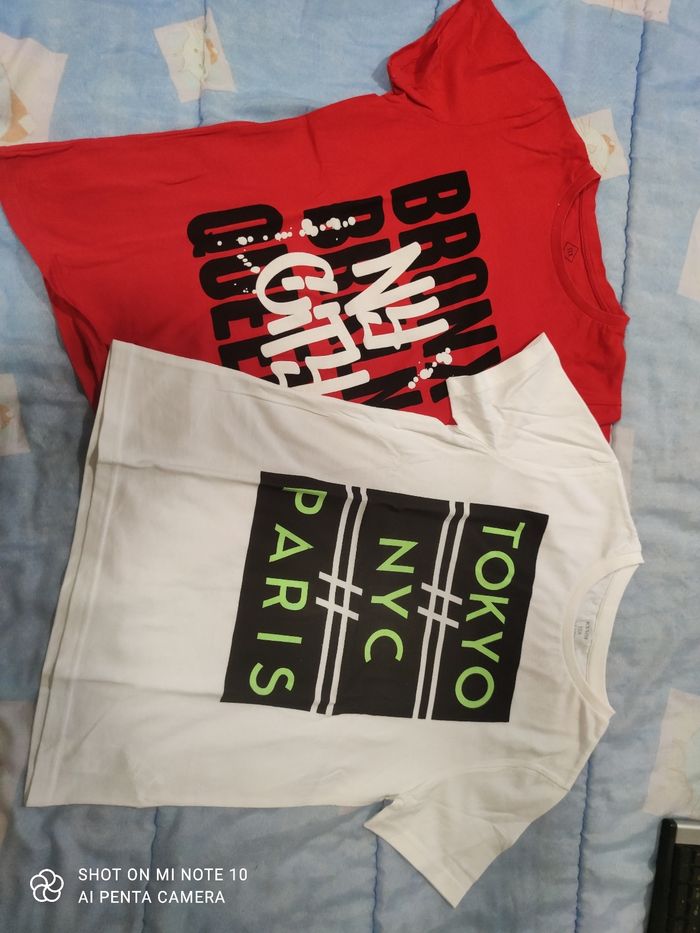 2 tee-shirt neuf sans étiquette garçon taille 12/14 ans 1 blanc jamais porté et 1 rouge porté 1 fois