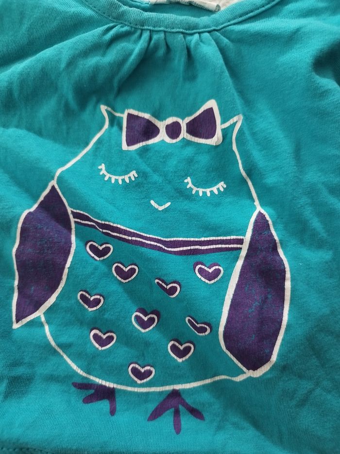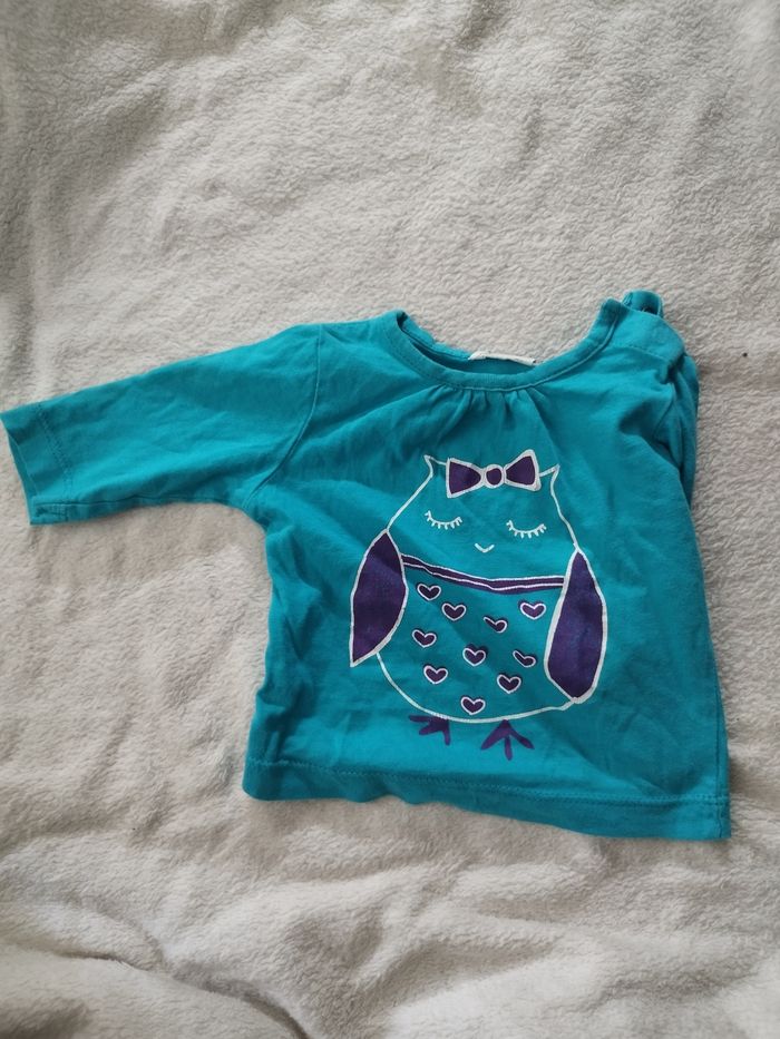 Tee-shirt chouette kitchoun 1 mois Porté QQ fois Léger pour la mi saison , il est très joli porté et fin lorsqu'il fait chaud