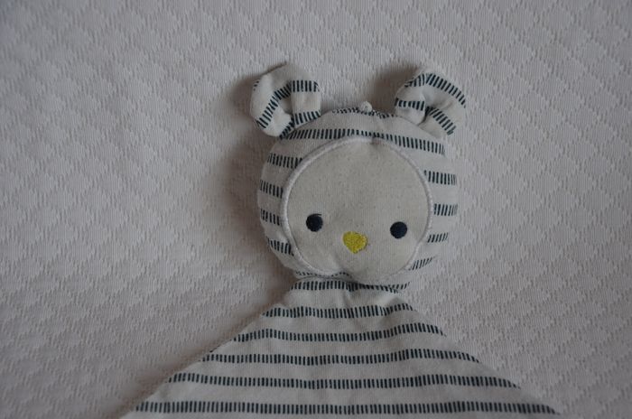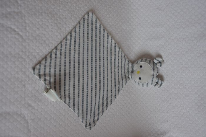 Doudou ours plat ** OBAÏBI ** 1132. Mouchoir en forme de losange blanc rayé bleu marine. Norme CE, lavable à 30°. Mesure à plat: 25 X 31 cm environ. Pas de trous, pas de taches. Doudou d'occasion, encore en très bon état. Pour certains doudous, j'ai des doublons, n'hésitez pas a demander. La plupart de mes doudous sont d'occasion, ils sont lavés et vérifiés. Merci d'en vérifier l'état dans la description. Tous mes doudous sont lavés, sauf les doudous neufs avec étiquette. N’HÉSITEZ PAS A DEMANDER DES PHOTOS SUPPLÉMENTAIRES , ET POSER DES QUESTIONS. J'essaye d'apporter le plus grand soin à la description, mais il se peut qu'un détail m'échappe, ce serait involontaire de ma part. Si il y a des taches, je le note dans le descriptif. Les colis sont envoyés le jour même de l'achat ( SI ACHETE AVANT 10h), au plus tard le lendemain. Pensez à grouper vos achats pour réduire les frais de livraison. Merci.