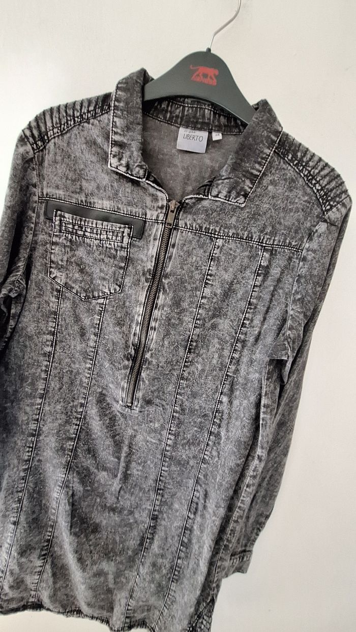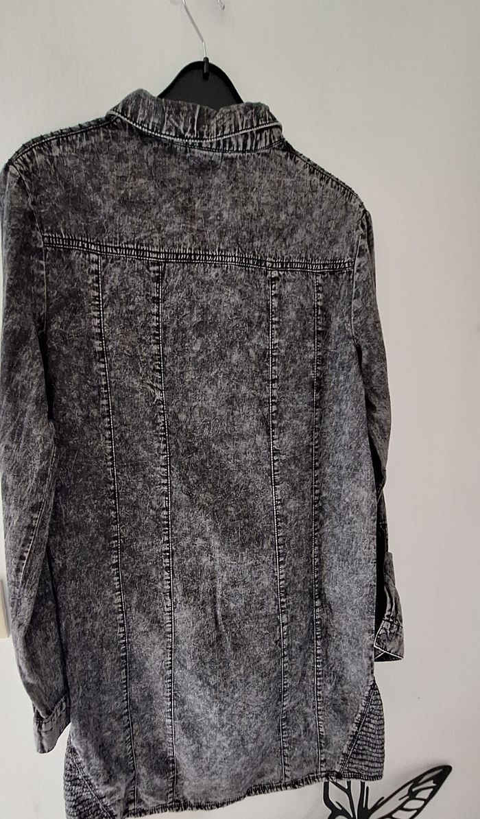 FEMME 38 / M N°1726 robe gris / noir Jeans léger Fermeture eclair au col Possibilité manche retroussé Longueur 85 cm Taille 38 / m Miss liberto 12,50€ #kelly_femmeT38