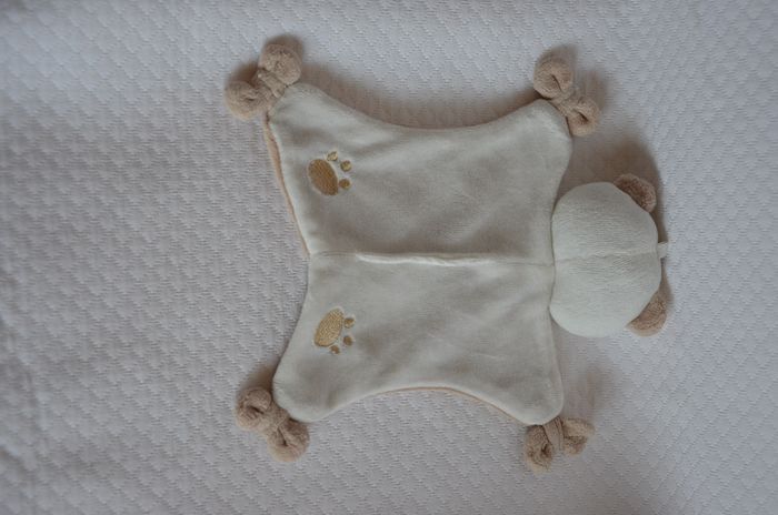 Doudou plat ours ** SIPLEC ** 1109. Quatre nœuds, empreintes de pattes au dos. Etiquettes coupées.. Mesure à plat: 21 X 19 cm environ. Pas de trous, pas de taches. Doudou d'occasion, très bon état. Pour certains doudous, j'ai des doublons, n'hésitez pas a demander. La plupart de mes doudous sont d'occasion, ils sont lavés et vérifiés. Merci d'en vérifier l'état dans la description. Tous mes doudous sont lavés, sauf les doudous neufs avec étiquette. N’HÉSITEZ PAS A DEMANDER DES PHOTOS SUPPLÉMENTAIRES , ET POSER DES QUESTIONS. J'essaye d'apporter le plus grand soin à la description, mais il se peut qu'un détail m'échappe, ce serait involontaire de ma part. Si il y a des taches, je le note dans le descriptif. Les colis sont envoyés le jour même de l'achat ( SI ACHETE AVANT 10h), au plus tard le lendemain. Pensez à grouper vos achats pour réduire les frais de livraison. Merci.
